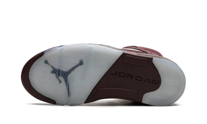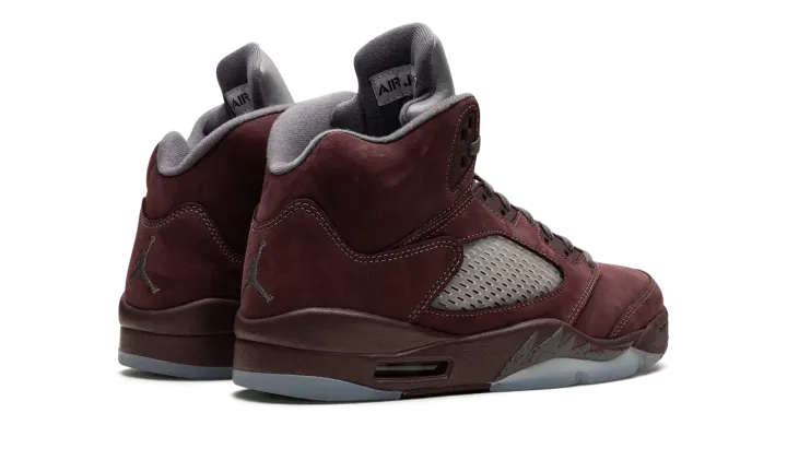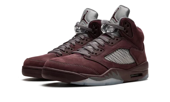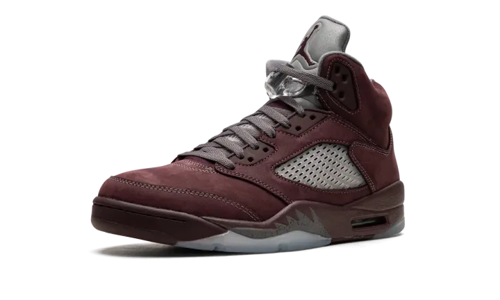 The Air Jordan 5 "Burgundy 2023" is the modern re-release of the non-original colorway of the retro basketball shoe that debuted in 2006. Once part of Jordan Brand's "LS" or "lifestyle" collection, the Jordan 5 "Burgundy" was one of the model's first non-original colorways, and one of its most popular releases of the 2000s. The modern edition is nearly identical to the original 2006 release. Deep Burgundy suede appears on the shoe's upper. Translucent netting is found on the mid-panel and on the tongue. A Deep Burgundy Jumpman appears on the silver reflective tongue and a silver Jumpman is embroidered on the heel. Light Graphite shark tooth detailing is found on the burgundy painted midsole. Release date: September 9, 2023