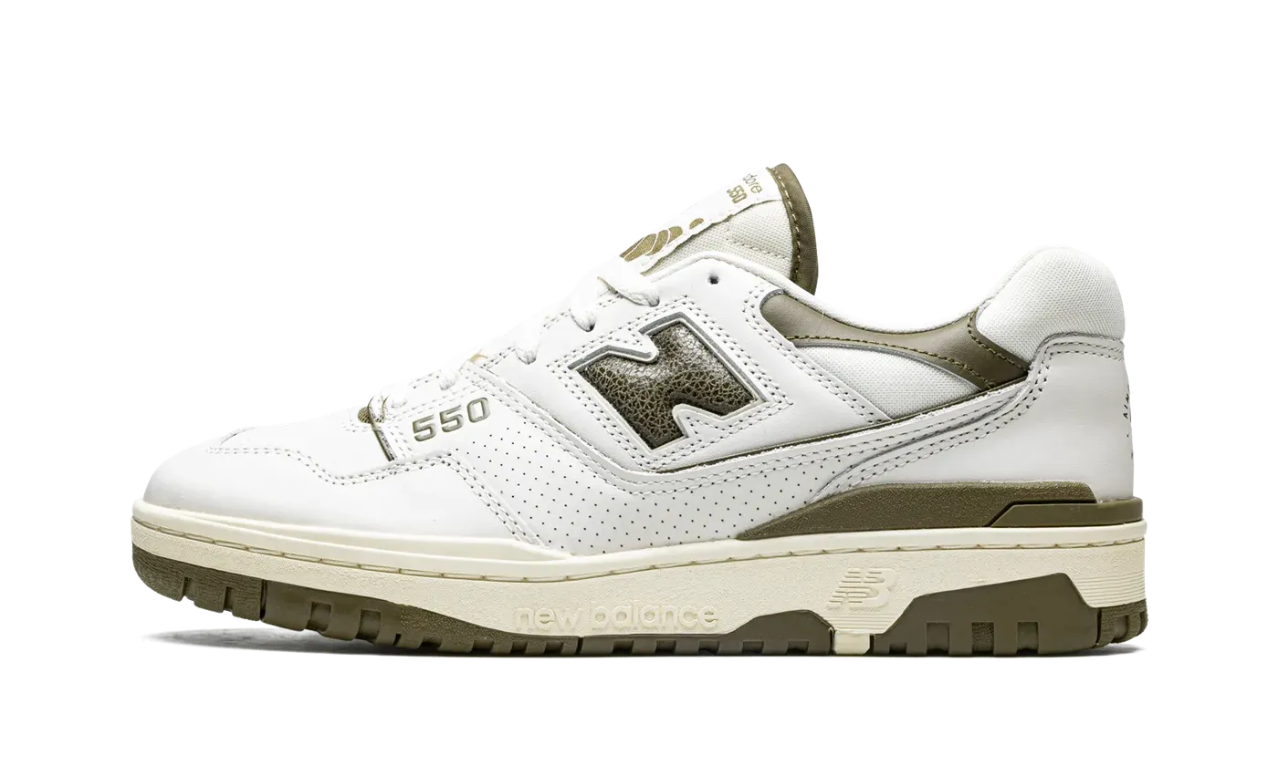 The Aimé Leon Dore x New Balance 550 "Olive" is a neutral based colorway of the popular lifestyle shoe designed by the New York clothing brand. The 550 model was brought back by Aimé Leon Dore in 2020 when Teddy Santis, "ALD's" founder and lead designer, found the shoe while combing through New Balance's archives for design inspiration. On the "Olive" colorway, details include a cream perforated leather construction with contrasting brown "N" branding on either side of the shoe. Olive green "550" branding appears on the forefoot and dual "Aimé Leon Dore" and "New Balance" branding is located on the heel of the left and right shoe, respectively. Additional olive accenting comes into play on the leather overlay on the collar, the trim on the sides near the midsole, and on the "New Balance 550" details on the tongue. Underfoot, a thick, vintage-inspired cream rubber midsole completes the look. Release date: June 21, 2022