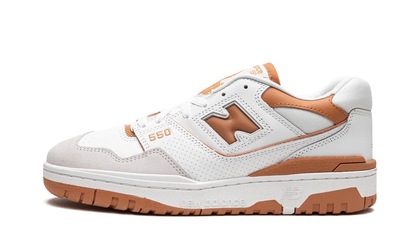 The New Balance 550 "Burnt Orange" is another clean colorway of the vintage basketball shoe by the Boston footwear company. On the "Burnt Orange" colorway, the design features a white leather base with a light grey suede overlay on the toe. Contrasting Burnt Orange "N" branding is found on the sides and on the "550" embroidery on the lateral side of the forefoot. The orange hue appears on the "New Balance 550" insignia on the tongue and on the "NB" branding on the heel. A Burnt Orange leather overlay is located on the collar. A chunky white rubber midsole and orange outsole complete the look. Release date: February 23, 2023