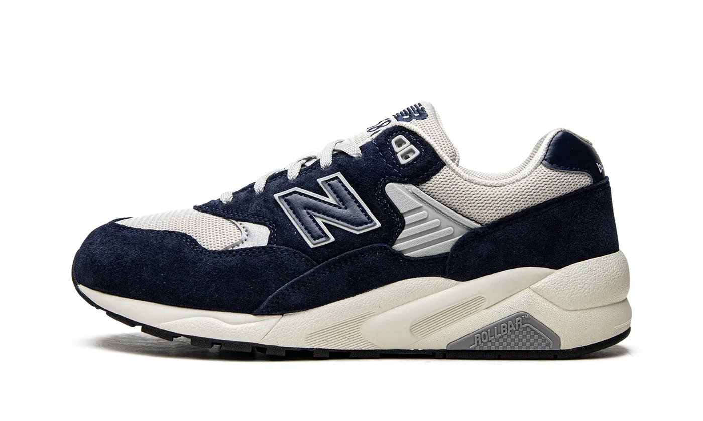 The New Balance 580 "Natural Indigo" is a timeless look for the comfortable lifestyle shoe that features a mostly grey and navy design. The New Balance 580 was featured in the brand's Fall 2022 collaboration with Palace, and subsequently released in colorways like the "Natural Indigo," much to the delight of sneaker collectors. The design features a grey mesh base contrasted with Natural Indigo suede overlays throughout the upper. A grey "N" logo appears on either side of the shoe. Navy "New Balance" branding is printed on the back of the collar. "NB 580" detailing is embroidered in navy on the grey mesh tongue. The shoe's chunky, cream rubber midsole completes the look.