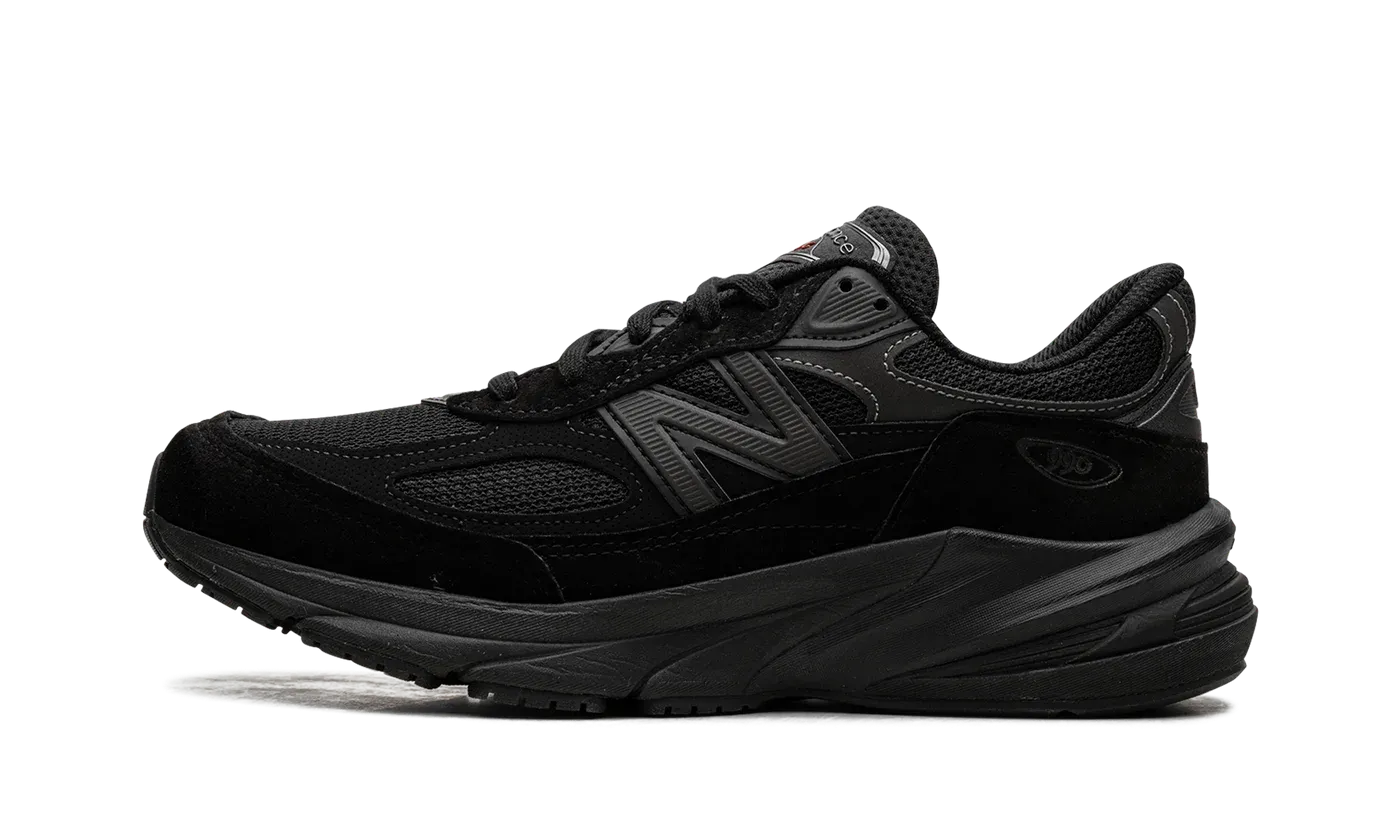The New Balance 990v6 "Triple Black" is a monochromatic black colorway of the lifestyle shoe. The New Balance 990v6 debuted in 2023 and was released as part of New Balance's "Made in USA" collection headed up by Aimé Leon Dore's Teddy Santis. On this colorway, the model has an all-black look. The upper is complete with a black mesh base and black suede overlays. A black "N" logo appears on both sides of the shoe and "New Balance" branding is seen on the tongue. New Balance's ABZORB cushioning with FuelCell and ENCAP technology are encased within the midsole. Release date: April 18, 2024