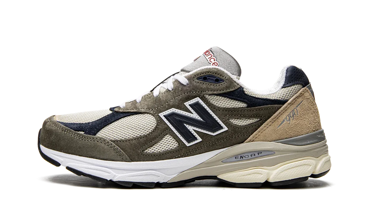 The New Balance 990 V3 "Olive" is a popular colorway of the lifestyle shoe from New Balance's collaboration with Aimé Leon Dore founder Teddy Santis. In 2021, Santis was named the Creative Director of New Balance's "Made in USA" collection and, a year later, the New York-based designer released his debut collection. The 990 V3 in "Olive" features an off-white mesh base with olive green pig suede overlays. A navy "N" logo appears on the sides. A tan suede overlay with silver "990" detailing on the lateral side is found on the heel. Classic "New Balance 990" branding appears on the tongue in red lettering. An ENCAP cushioned midsole provides a comfortable ride. Release date: October 27, 2022