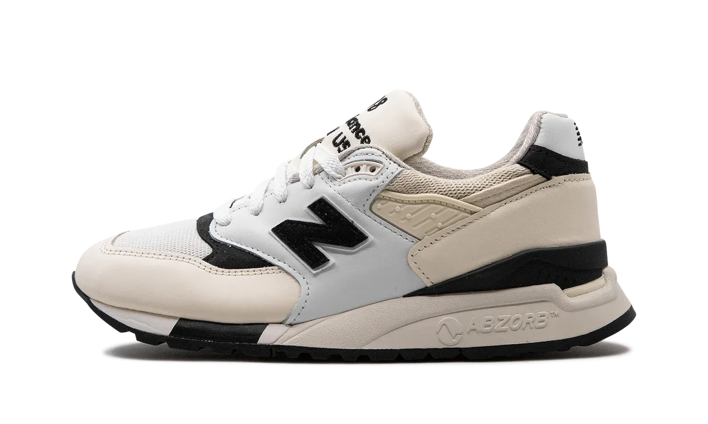 The New Balance 998 "Made in USA - White/Black" is an easy-to-style colorway of the casual sneaker from Teddy Santis's "Made in USA" collaboration with New Balance. Overseen by Aimé Leon Dore's founder and lead designer, the New Balance "Made in USA" line puts premium materials on some of the brand's most essential sneakers. Here, the 998 in "White/Black" features a cream mesh base with white leather and black textile overlay panels. A black leather "N" logo appears on each side of the shoe. Classic "New Balance 998 Made in USA" branding is embroidered on the tongue. An ABZORB cushioned midsole provides all-day comfort. Release date: September 21, 2023
