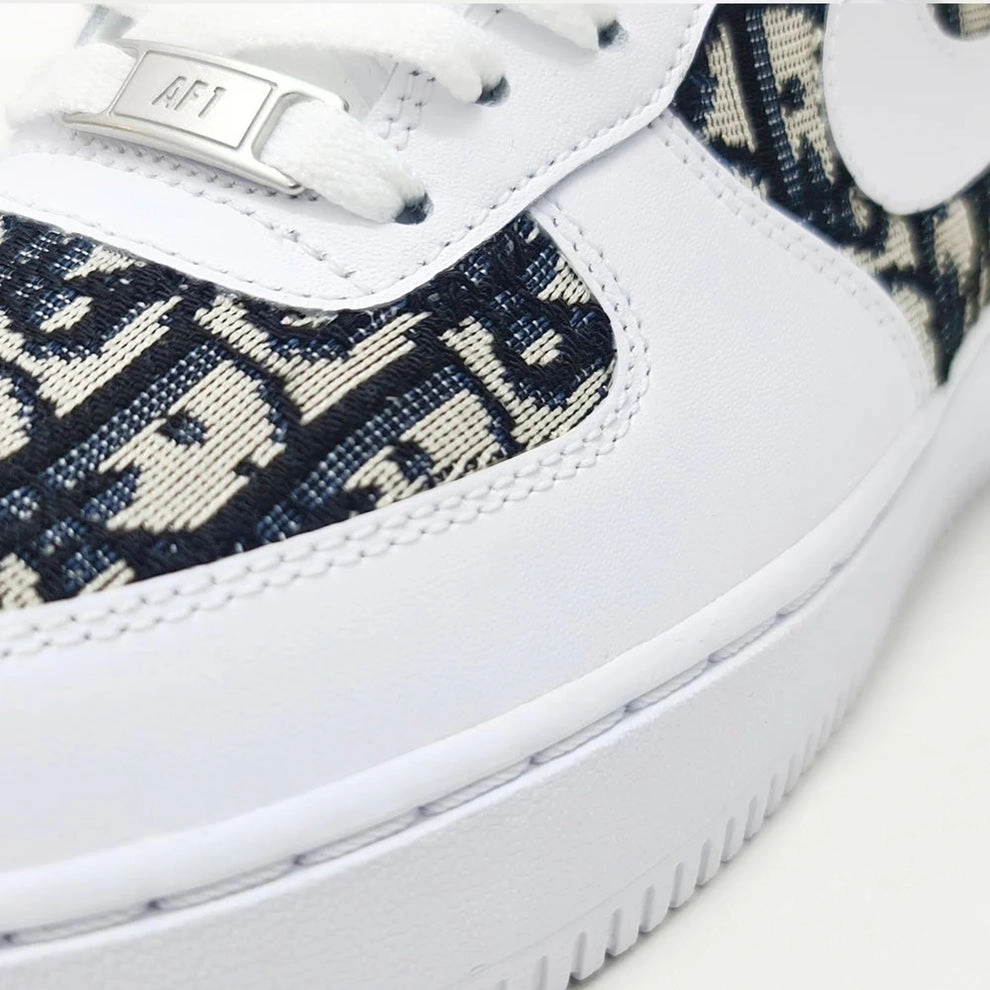 Эти особенные кроссовки Nike не являются прямым сотрудничеством с Dior, но являются эксклюзивным, сделанным вручную дизайном, созданным нашими опытными мастерами. Мы используем аутентичные материалы от известных брендов, таких как Dior, Gucci, Louis Vuitton и другие, и наша команда перерабатывает каждую пару с большой точностью. Мы приобретаем настоящие дизайнерские вещи, такие как сумки с незначительными дефектами, которые мы обрезаем и перерабатываем, чтобы добавить, например, стиль, вдохновленный Dior, к кроссовкам Nike. Каждая пара тщательно изготовлена с акцентом на качество, прочность и роскошный вид.