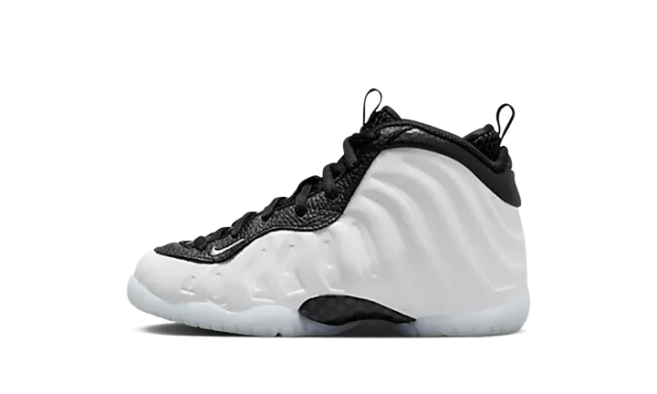 The Nike Little Posite One PS "Penny Hardaway PE" is the Preschool sizing of Anfernee "Penny" Hardaway's signature shoe in a former Player Exclusive colorway debuted by Penny in 1996-97 with the Orlando Magic. A classic style that was never released by Nike until 2023, the white-based Little Posite One features a white Foamposite shell with contrasting black leather on the eyestay and collar. Penny's signature "1-Cent" logo is embroidered on the back of the shoe while a white leather Swoosh is embroidered on the lateral side of the toe. Release date: April 7, 2023