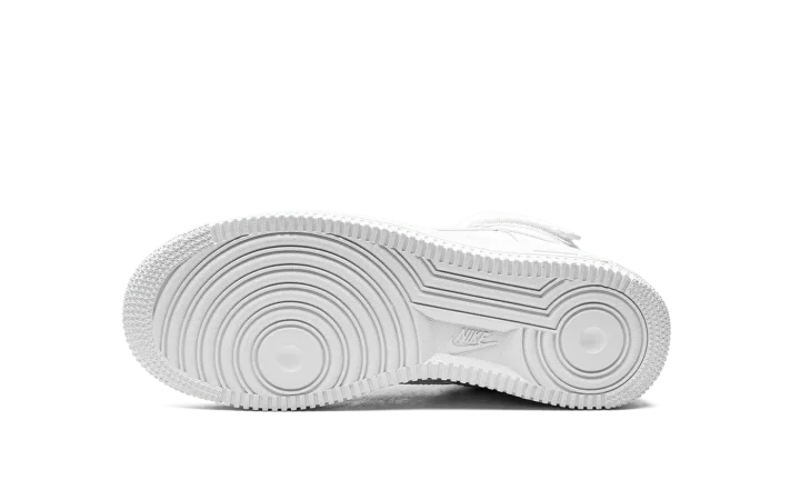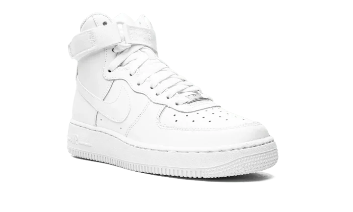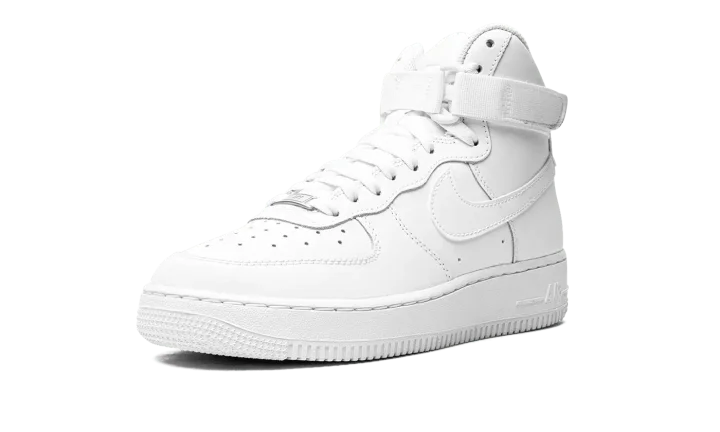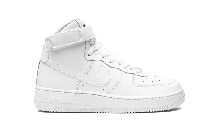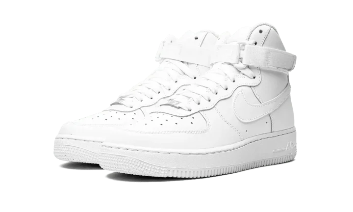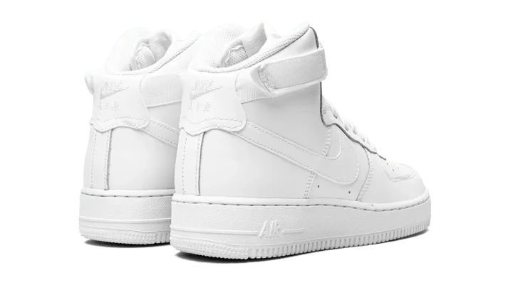 The Nike Air Force 1 High GS "Triple White" brings a clean and refreshing colorway to the classic basketball sneaker for kids. Arriving in grade school sizes, the shoe features a white leather upper supported by an adjustable ankle strap and high-cut padded collar. Perforations on the toe box are included for breathability, while the underfoot has a tonal rubber cupsole with both a foam wedge and encapsulated Air to provide cushioning.