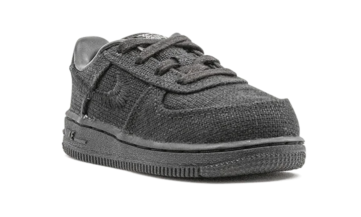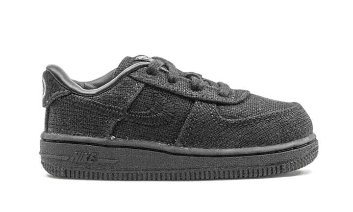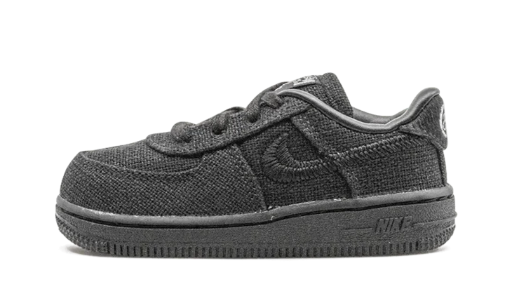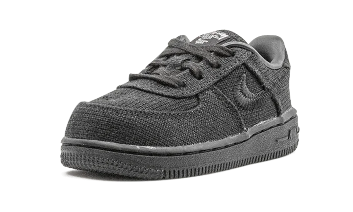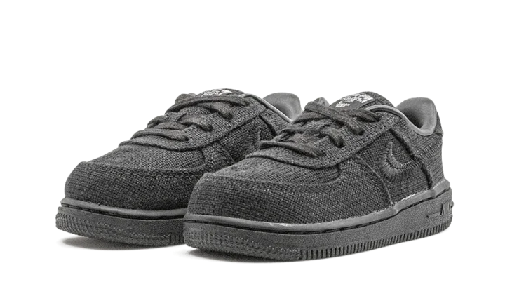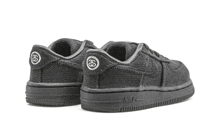 The Stussy x Nike Air Force 1 Low TD "Black" is the toddler sizing of the Winter 2020 collaboration imagined by the California based streetwear outfit and Nike on the timeless low-top silhouette. The "Black" colorway was released alongside an equally potent "Fossil" look in December 2020 as part of Stussy's 40th anniversary celebration. Like the "Fossil," the upper of the stealthy "Black" makeup is constructed from a hearty canvas material, save for the tonal black Swoosh and Stussy embroidery that appears on the toe and heel. A co-branded black nylon tongue tag with Stussy and Nike detailing provides a contrast of color against the predominately all-black aesthetic of this Air Force 1 Low. Release date: December 11, 2020.