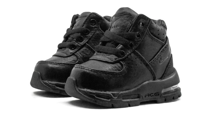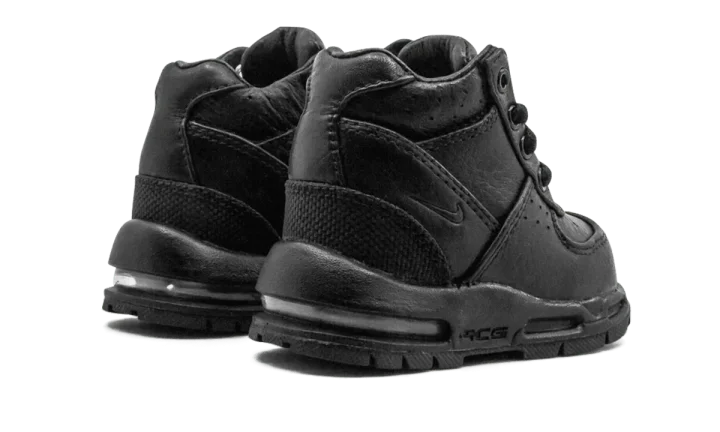 The Nike Air Max Goadome in black is a winter-ready boot that effectively keeps wind and water from chilling toddler toes. Built for tough terrain, snowy conditions, and ankle-deep puddles, this amped-up sneaker boot is styled with a waterproof, full-grain black leather. Breathable material is featured on the toe box and side panels. The durable rubber sole comes with a lugged tread pattern for maximum traction and durability. Adding comfort to the Nike Air Max Goadome sneaker boot is a full-length Air Max unit.