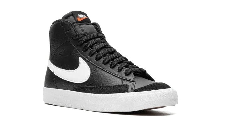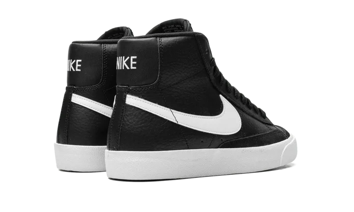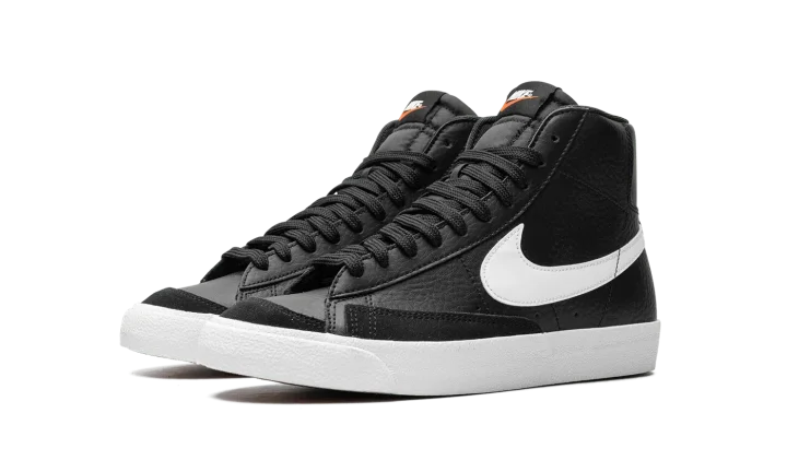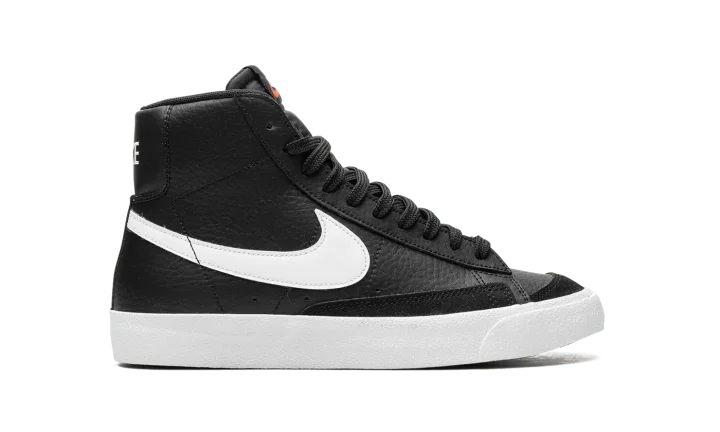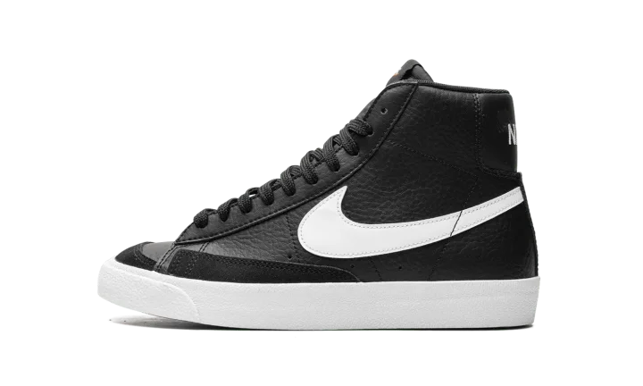 The Nike Blazer Mid '77 GS "Black/White" is the youth sizing of the classic basketball and lifestyle shoe in a versatile colorway. The "Black/White" version of the Blazer Mid '77 gives the model a decidedly "Panda" inspired look with its black leather upper and white leather Swoosh. Black suede overlays appear on the toe and forefoot. "NIKE" branding is seen on the heel and a classic "Nike" logo is paired with a Swoosh on the tongue tag. A vulcanized white rubber sole completes the look of this Blazer for kids.