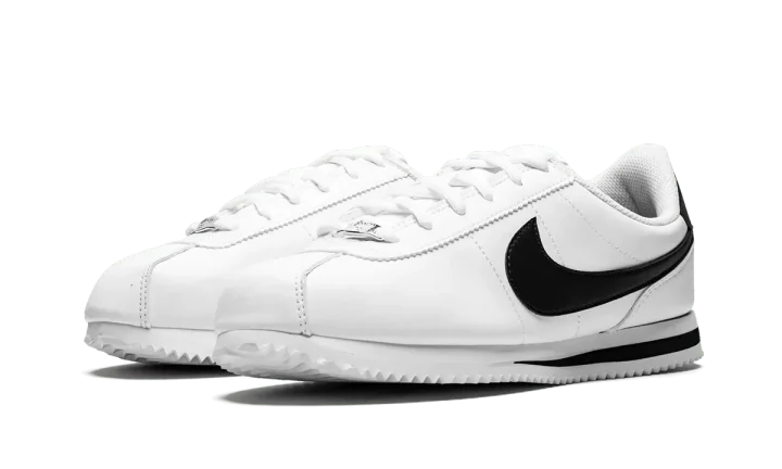 The Nike Cortez Basic SL GS is the youth sizing of one of Nike's performance running models from the 1970s. Having maintained its appeal for decades, the Cortez has remained a premier lifestyle shoe whatever the trend. For this pair, synthetic leather wraps the upper creating a clean white look throughout. Classic black accenting provides contrast on the Nike Swoosh, heel tab, and portion of the midsole. A metallic silver lace dubrae adds a finishing touch.