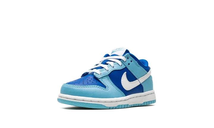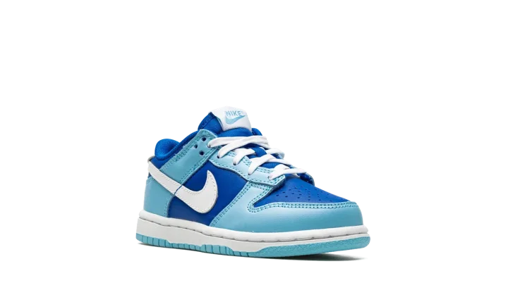 The Nike Dunk Low PS "Argon" is the preschool sizing of the modern reissue of the former "Concept Japan," or "Co.Jp" colorway from Nike's former Japan-exclusive collection from 2001. The "Argon 2022" was brought back as a global release in full family sizing in October 2022, and is identical to the version that was released exclusively in Japan in 2001. The shoe features a mostly two-tone blue color scheme with dark blue leather on the base and light blue leather on the overlays. A white leather Swoosh can be found on either side of the shoe. Blue "Nike" branding is embroidered on the white leather heel overlay. A light blue "Nike" logo is paired with a light blue Swoosh on the tongue tag. Release date: October 8, 2022