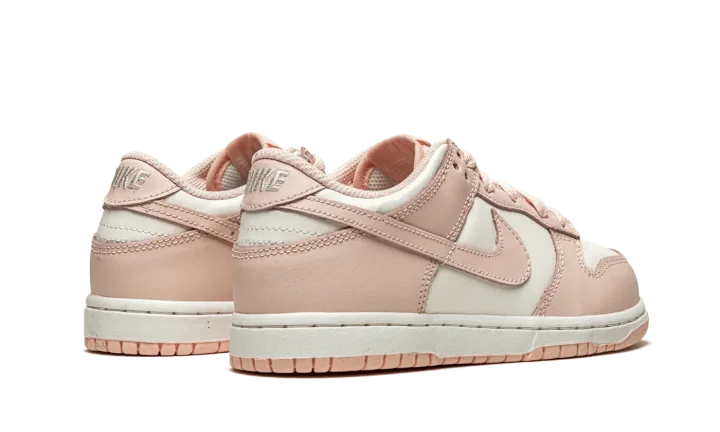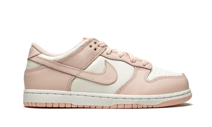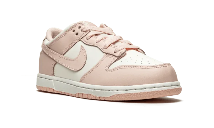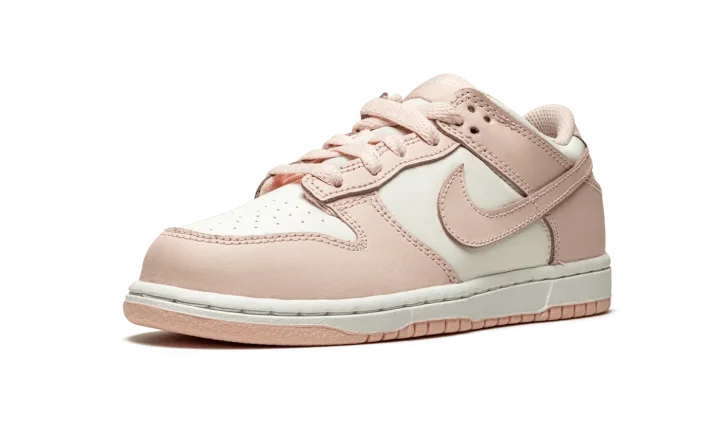 The Nike Dunk Low PS "Orange Pearl" is the preschool sizing of the March 2021 colorway of the retro basketball sneaker. On the "Orange Pearl," a crisp cut of white leather can be found on the perforated toe and on the mid-panel, collar, and heel. The panels on the forefoot, eyelets, collar, and Swoosh are finished off in an appealing shade of Orange Pearl leather. The same orange-pink hue is located on the branding patch on the white nylon tongue, on the laces, and on the outsole. White Nike embroidery is stitched onto the heel to complete the look. Release date: March 15, 2021.