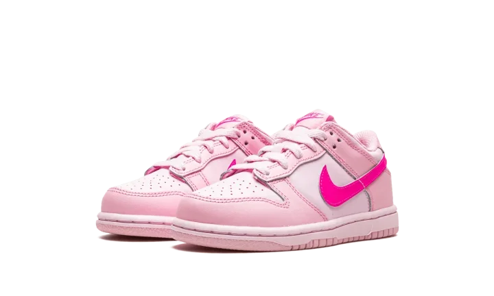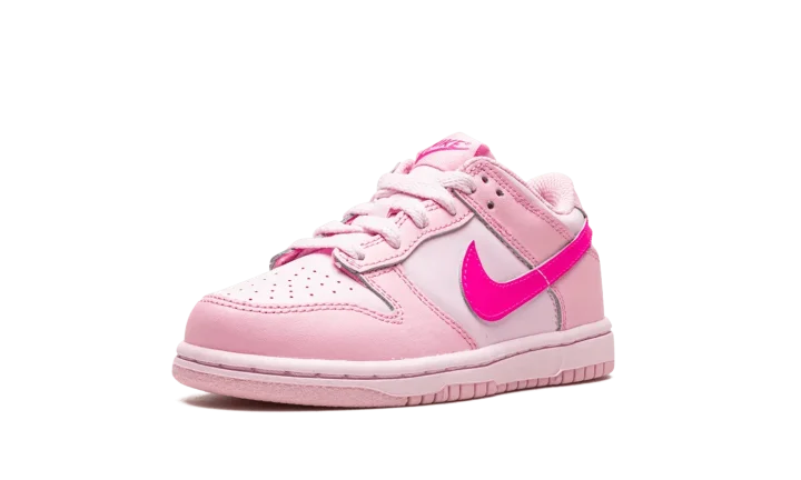 The Nike Dunk Low PS "Triple Pink" is assured to be an eye-catcher anywhere it goes. This vibrant Dunk Low for kids features a combination of light and neon pink hues across the entire upper, which is constructed in leather. Matching pink shades are found on the rubber sole unit to complete the "Triple Pink" design.