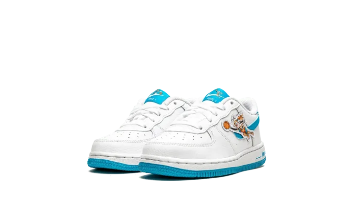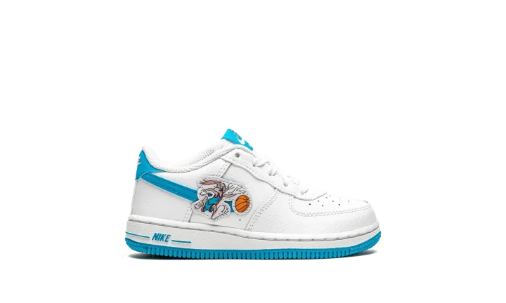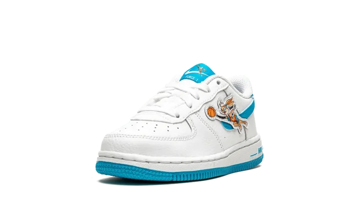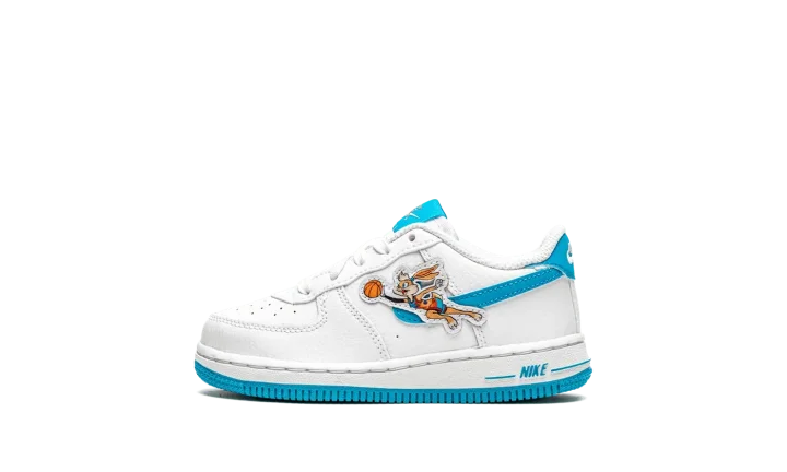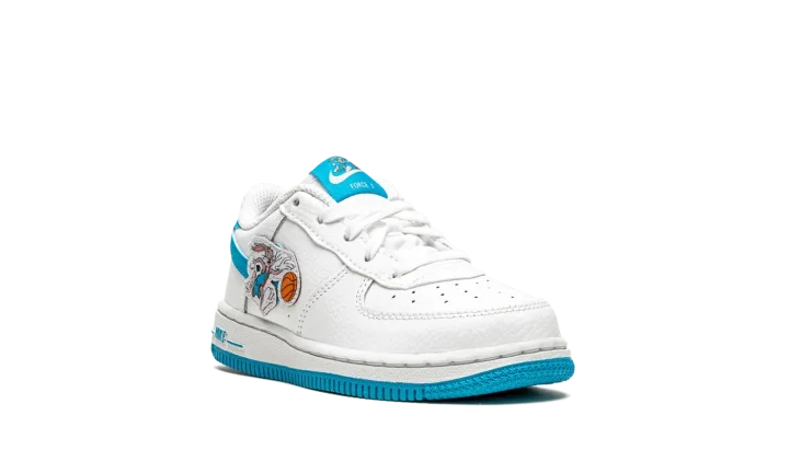 The Space Jam x Nike Force 1 TD "Toon Squad" is a special look for the classic sneaker in toddler sizing that coincides with the release of the "Space Jam 2" film starring LeBron James and the Looney Tunes. Appealing to people of all ages, especially children, the "Toon Squad," shows love to the two star rabbits of the Space Jam franchise, Bugs and Lola Bunny. An embroidered patch of Bugs Bunny is stitched over the Swoosh on the medial side of the right shoe, while Lola is found stitched over the left shoe's Swoosh. Both characters are also found on the tongue tags, as well. The upper's crisp white leather body is reminiscent of the Air Force 1's "White on White" design. Release date: July 16, 2021