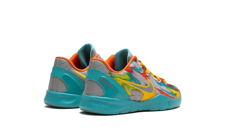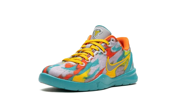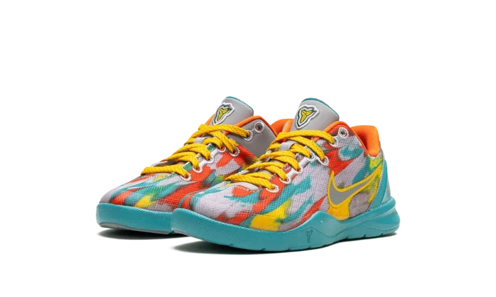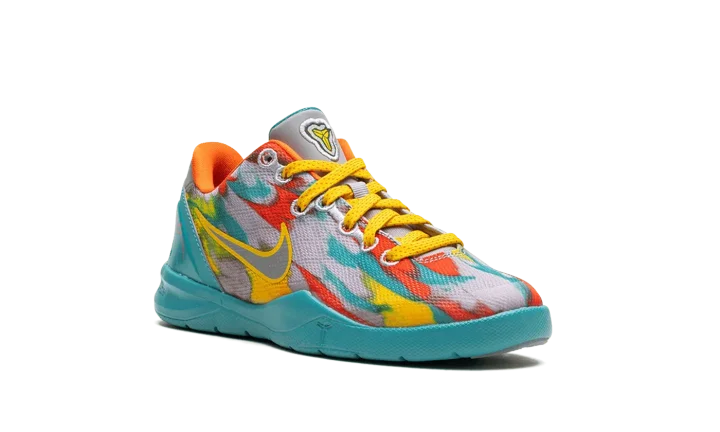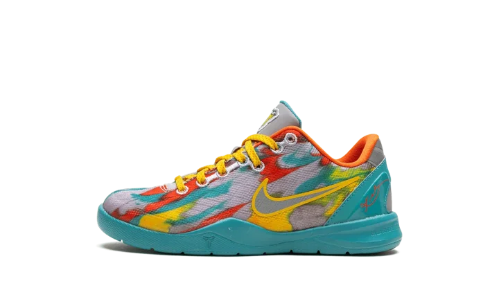 The Nike Kobe 8 Protro PS "Venice Beach" is the preschool sizing of Kobe Bryant's eight signature shoe inspired by graffiti art found on the boardwalk of Venice Beach, California. The Nike Kobe 8 Protro "Venice Beach" has a design as bold as the charm of the West Coast beach. The upper features a grey perforated knit base accented with red, teal, and yellow highlights. A yellow trim surrounds the grey Swoosh on both sides of the shoe. Kobe's signature branding appears on the tongue and on the teal heel counter. Underfoot, the teal midsole and grey rubber outsole complete the look. The Nike Kobe 8 Protro GS "Venice Beach" features the model's original thin tongue for an accurate-to-OG look. Release date: April 13, 2024