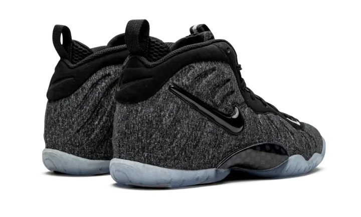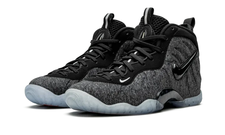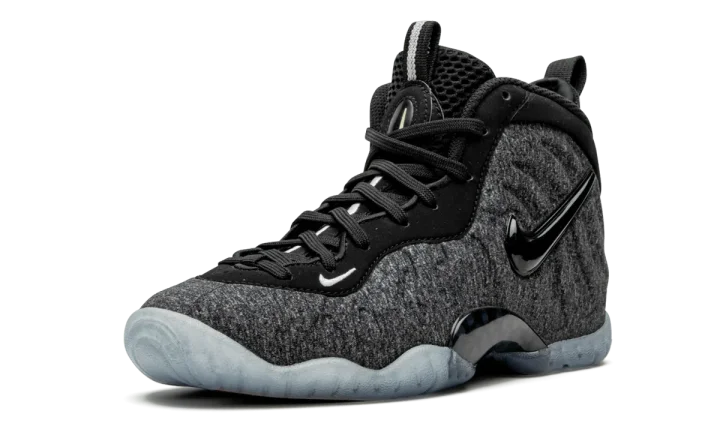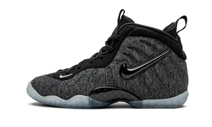 The Nike Little Posite Pro GS takes on a futuristic style with a children's iteration that features the iconic Foamposite shell. A dark heather grey and black color combination dresses the upper with fleece wool, a synthetic suede collar, and carbon fiber midfoot. The high-top basketball sneaker includes a shiny black Swoosh along the side wall of the model and the frosty translucent midsole offers full-length Zoom Air technology accompanied by the herringbone-patterned outsole for added traction.