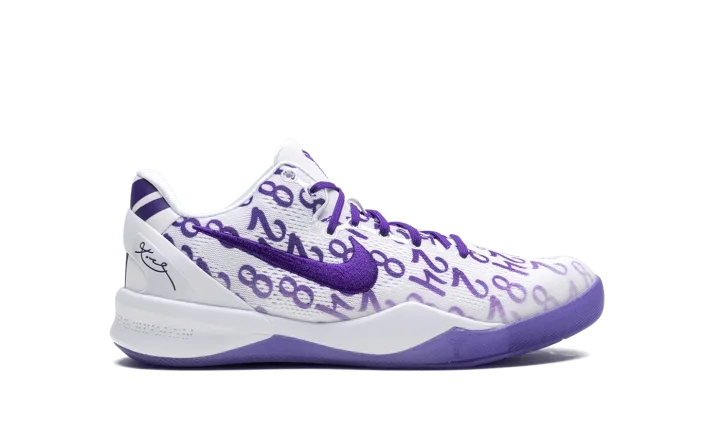 The Nike Kobe 8 Protro GS "Halo" is the youth sizing of an all-white colorway of Kobe Bryant's eighth signature basketball shoe with Nike. Memorably worn by Bryant with the Los Angeles Lakers during the 2011-12 NBA season, the Kobe 8 Protro returns for the first time since appearing in 2016's "Black Mamba Pack" in this all-white colorway. The shoe has a white mesh construction with tonal Swoosh branding on the side. The heel counter, laces, and tongue all appear in white, as does Kobe's signature Nike branding on the tongue. A white foam midsole with encased Zoom Air cushioning completes the shoe's all-white appearance.