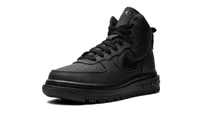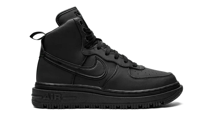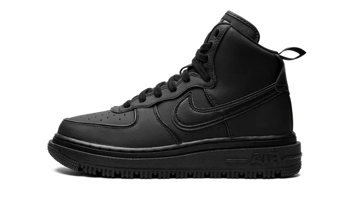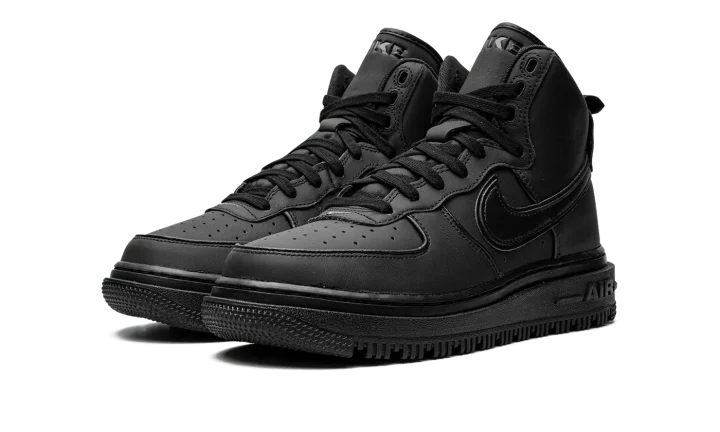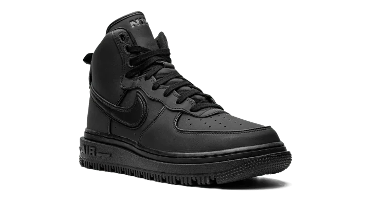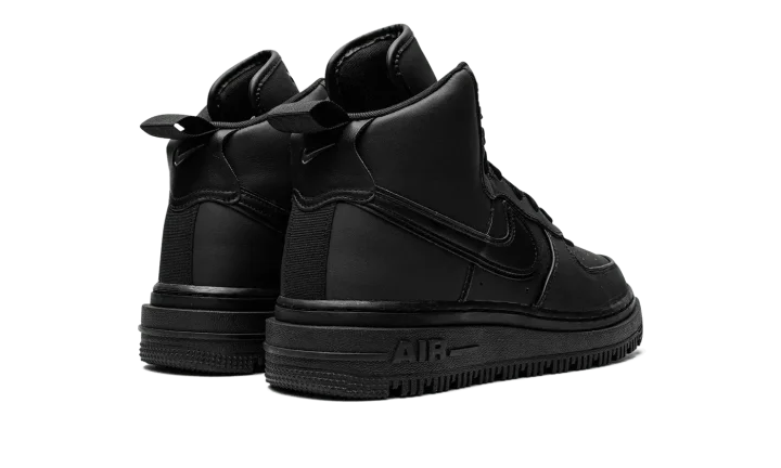 The Nike Air Force 1 Boot "Black/Anthracite" is a rugged sneaker-boot hybrid that updates its design with rugged materials to withstand inclement weather conditions. The "Black/Anthracite" gives the Air Force 1 Boot a durable makeover that is resistant against tears, scuffs, and abrasions, making it an ideal option for the fall and winter months. The upper is constructed from a water-resistant black textile that keeps the wearer's foot dry. Underfoot, a black midsole with tonal "Air" branding and a lugged rubber outsole complete the formidable sneaker-boot.