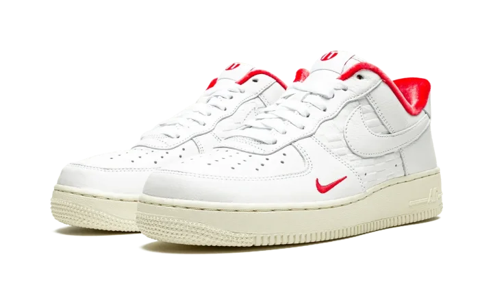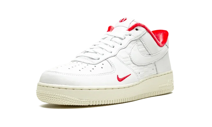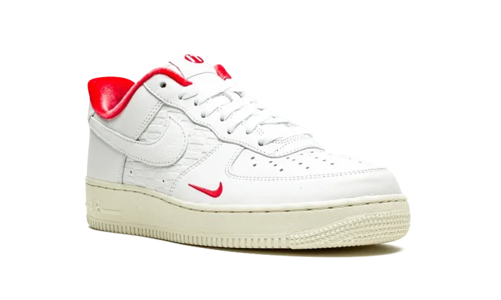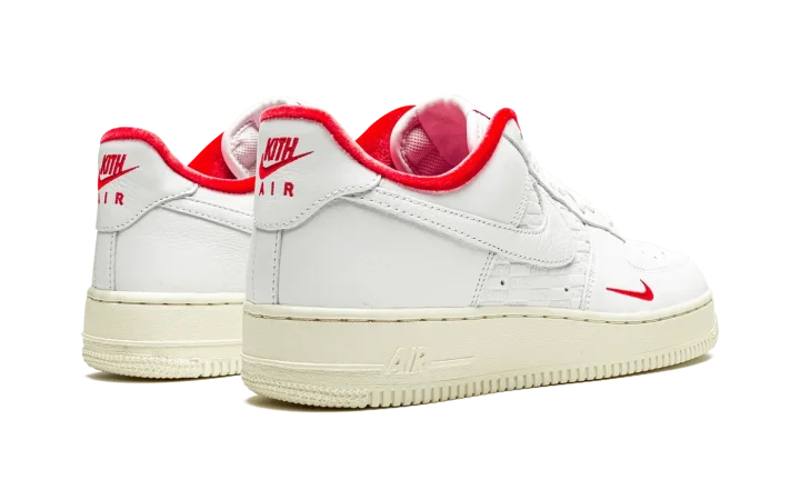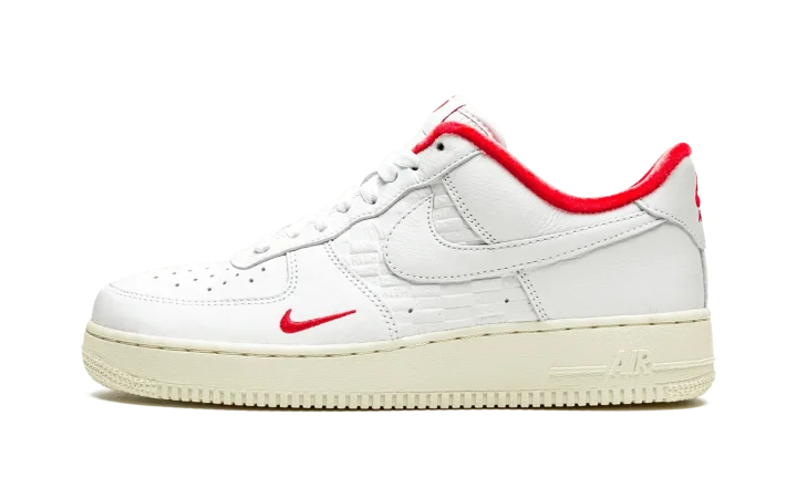 The Kith x Nike Air Force 1 Low "Tokyo" is a limited edition collaboration between Ronnie Fieg's sneaker boutique and Nike on the vintage basketball shoe that pays homage to the Japanese flag. Keeping a mostly monochromatic white appearance, the "Tokyo" features a white leather upper with tonal "Kith" embossed monogram branding on the mid-panel. University Red accenting comes into play on the small embroidered Swoosh on the forefoot, on the interior lining, and on the unique "Kith Air" branding found on the heel. Special "Kith" detailing appears on the tongue and is inspired by the Japanese flag. The Kith x Nike Air Force 1 Low "Tokyo" was released exclusively at Kith's Tokyo outpost in limited quantities in July 2020. Release date: July 4, 2020