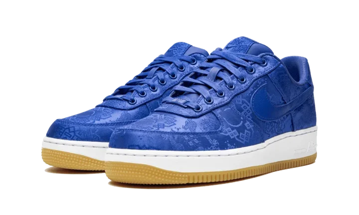 The Clot x Nike Air Force 1 Low "Blue Silk" is an ultra limited collaboration between the Chinese streetwear imprint and Nike on the Uptown footwear icon. Known within streetwear circles for their thought provoking designs, Clot had previously laced their 2009 1WORLD series Air Force 1 with a red silk upper. The brand revisits the theme again, this time subbing in a blue hue. Like its predecessor, the Clot-designed "Blue Silk" Air Force 1 features an intricate woven pattern within its silky upper that highlights the influence of Ying/Yang, a concept representing the attraction of opposite forces. Tonal leather Swooshes and blue silk tongue tab labels provide additional detailing. Clot branding sits on the insole while a white rubber midsole and gum bottom complete the look. Release date: November 11th, 2019.