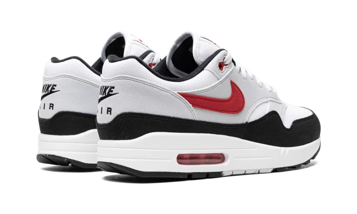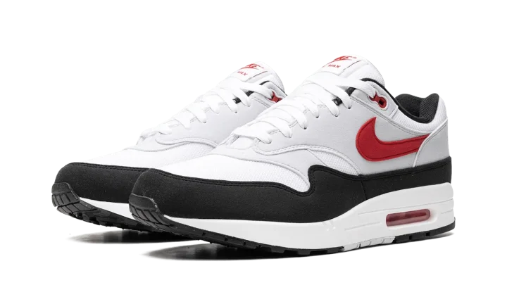 The Nike Air Max 1 "Chili 2.0" is a remix of the "Chili" colorway that debuted on the retro running shoe in 2003. Updated with a slightly different look, the "Chili 2.0" features a lighter shade of grey on the overlays and a reverse-colored tongue tag in comparison to the original design from the early 2000s. More specifically, the "Chili 2.0" features a white mesh construction with grey overlays and a University Red Swoosh. Navy "Nike Air" branding appears on the heel and red "Nike Air Max 1" detailing is seen on the tongue tag. Underfoot, the white foam midsole is complete with a red-tinted Air bubble in the heel. Release date: July 20, 2023