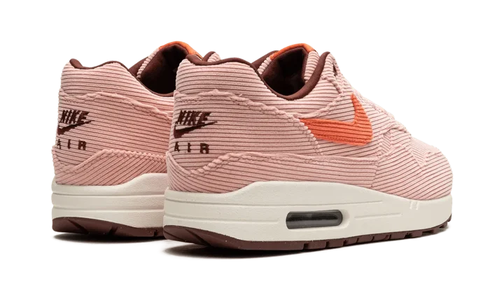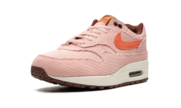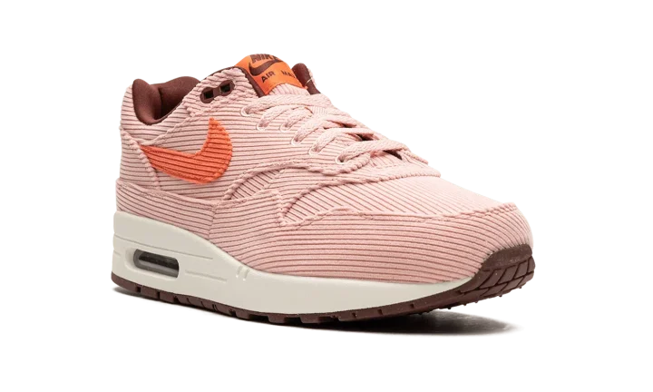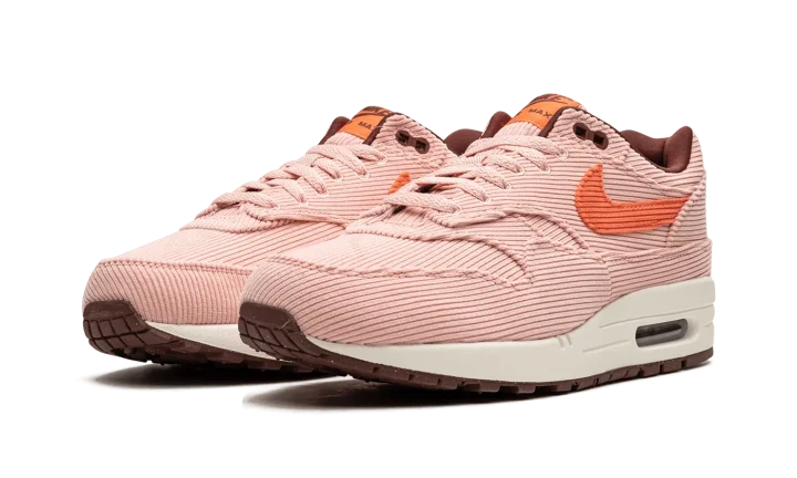 The Nike Air Max 1 PRM "Coral Stardust" is an alternate version of the retro performance running shoe made from coral-colored corduroy. The classic sneaker is designed in a Coral Stardust corduroy construction with a Bright Coral corduroy Swoosh on the sides. An Oxen Brown "Nike Air" logo is embroidered on the heel and "Air Max 1" branding is printed on the tongue tag. A white foam midsole with a clear Air bubble in the heel rounds out the look. Release date: May 26, 2023