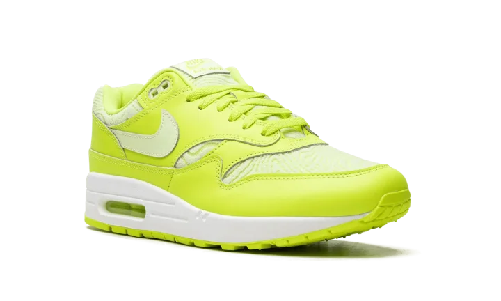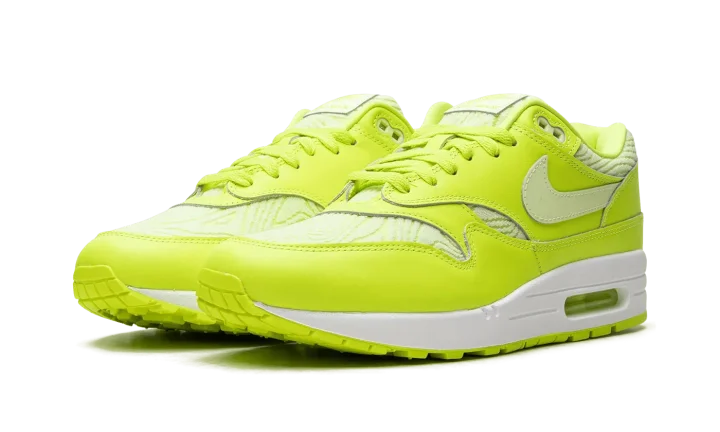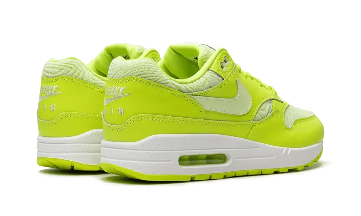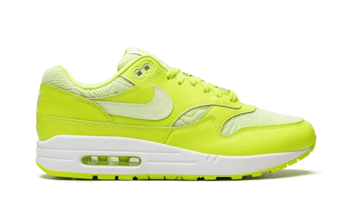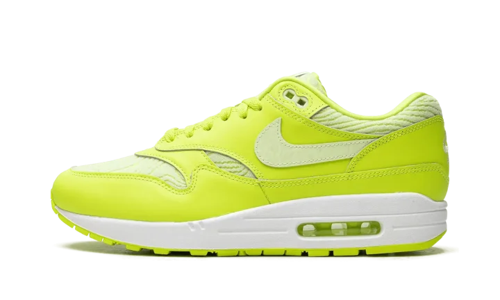 The Nike Air Max 1 PRM "Volt" is a head-turning colorway of the retro running sneaker with a unique topographic pattern on its design. Designed by famed footwear designer Tinker Hatfield, the Air Max 1 is the original Air Max shoe, and one of the most celebrated sneakers of all time. On the "Volt" colorway, the shoe's timeless design is updated with a Volt-colored topographic pattern on the textile base. Volt leather overlays appear throughout the shoe. A classic Swoosh is seen on either side. Underfoot, the white foam midsole features a visible Air cushioning bubble. Release date: August 1, 2023