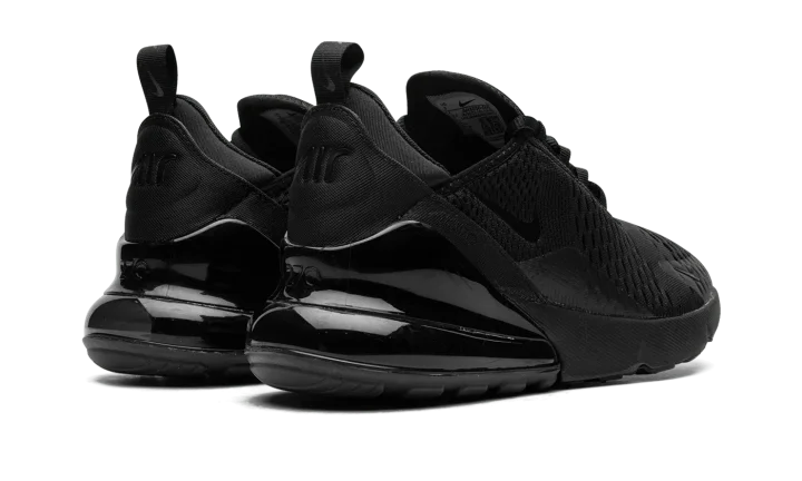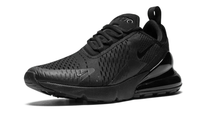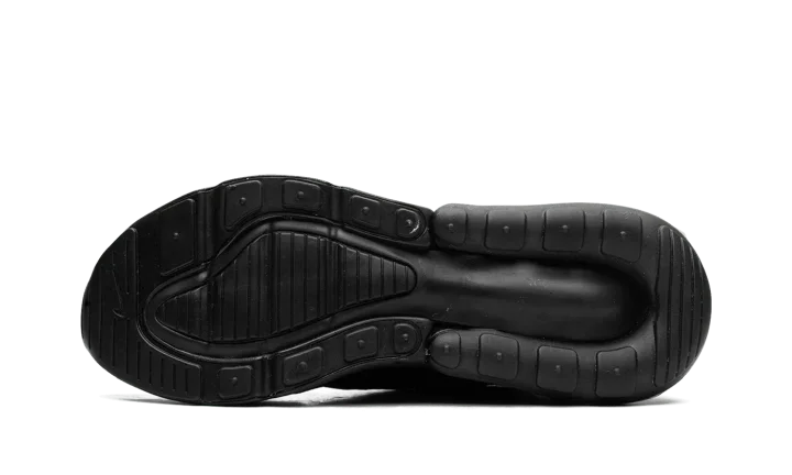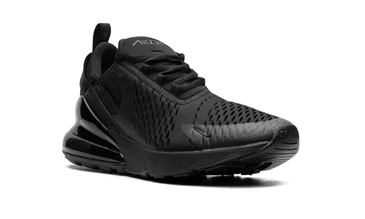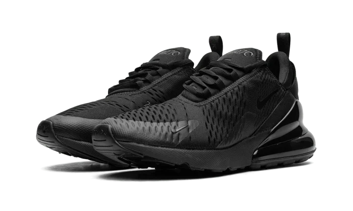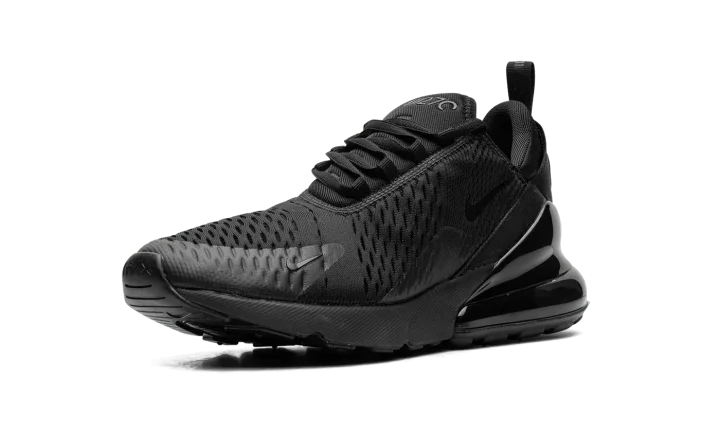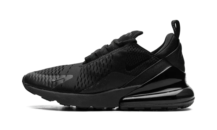 The Nike Air Max 270 "Triple Black" is a black monochromatic colorway of the comfortable lifestyle shoe. If the giant Air bubble on the back of the Air Max 270 looks familiar, that's because it is—none other than the Nike Air Max 93's 360-degree Air unit inspires the design's oversized look. The rest of the shoe is decidedly contemporary with black mesh forming the base and black neoprene on the heel counter. A bootie-like construction allows the wearer to effortlessly slip into the shoe. Tonal Swoosh hits can be found on the forefoot and lateral heel. Futuristic "Air" branding is embossed into the black synthetic overlay on the heel. The aforementioned Max Air unit in the heel displays a black tint and the lightweight foam midsole is painted black to complete the all-black aesthetic. Release date: March 16, 2018.