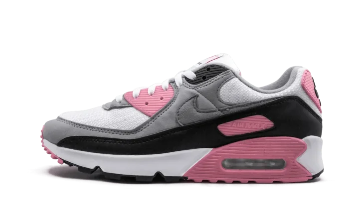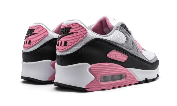 The Nike Air Max 90 "Rose Pink" was released in 2020 as part of the festivities surrounding the retro runner's 30-year anniversary. For the model's 30th birthday, Nike brought back the original shape and materials used on the first collection of Air Max 90 colorways. The "Rose Pink" was a recipient of this classic redesign, and it's easily one of the model's best modern releases. Details include white mesh on the toe and collar and grey felt on the mid-panel. A slightly darker grey hue is used on the Swoosh that appears on both sides. Although the "Rose Pink" is a non-original colorway, the arrangement of materials is consistent with the original styling of the Air Max 90. Elsewhere, Rose Pink accenting can be found on the lower eyelets, "Air Max" branding window, and heel tab with black "Nike Air" detailing. The same soothing hue is used on the "Nike Air" branding on the nylon tongue tag and on the panel that surrounds the visible Air unit in the heel. A buttery black leather mudguard above the white foam midsole completes the look. Release date: February 1, 2020.