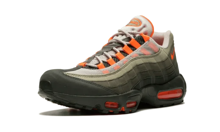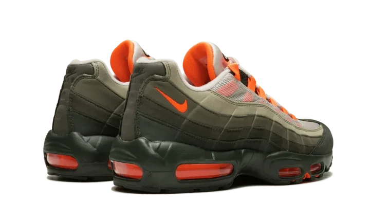 Released in 2018, the Nike Air Max 95 "Total Orange" adds a new twist to the model's classic gradient color blocking. The blueprint for the original look is there: a gradient upper with bright accents for the lace loops, branding, and Air units. But for this Air Max 95, the grayscale colors are replaced with shades of olive green for a subtly unique new look. The green tones are complemented with a vibrant shade of Total Orange. What you end up with for the Air Max 95 "Total Orange" is a retro-inspired look that feels fresh and new.