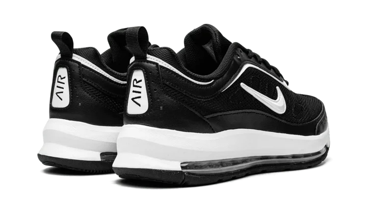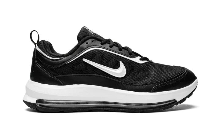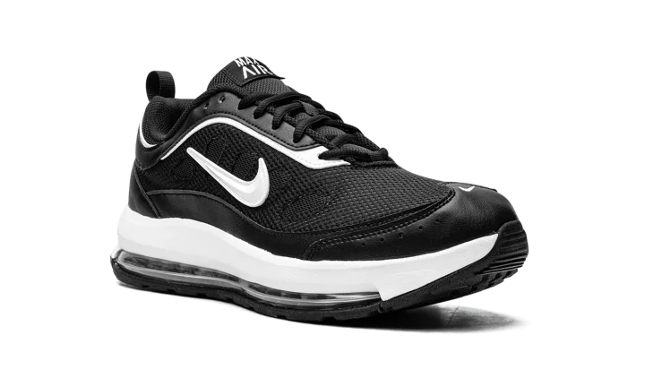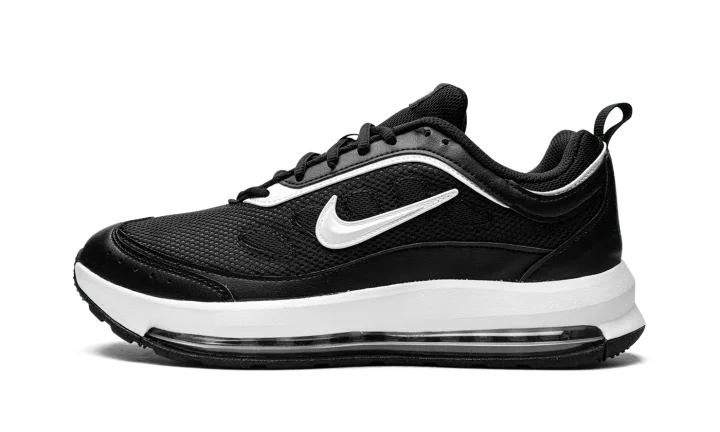 The Nike Air Max AP is a lifestyle shoe that was designed to perfectly marry the past (nods to the Air Max 97) with the present (modern sneaker innovation). Meant to be worn wherever, the sleek, sporty silhouette is presented in black with white accents throughout. The low-cut, lace up sneaker is constructed with a plush padded collar, airy mesh and synthetic leather upper, full-length Air unit, and comfortable insole. Reflective detailing is added to the heel and toe.