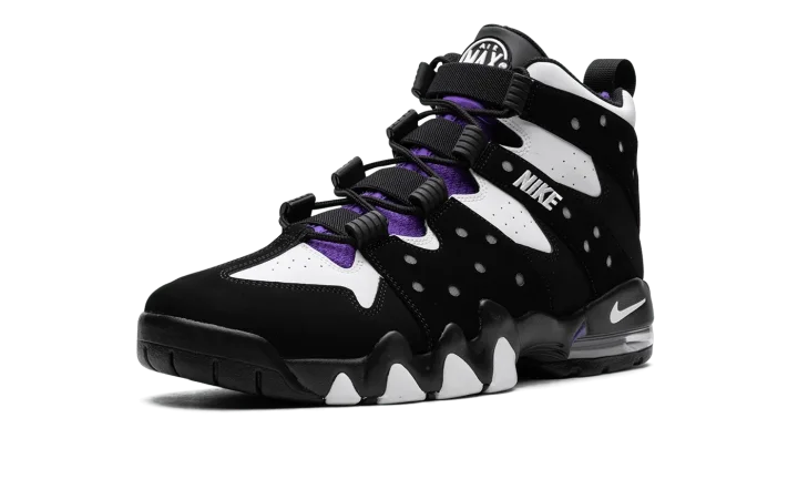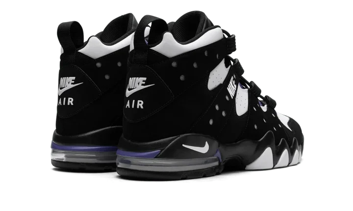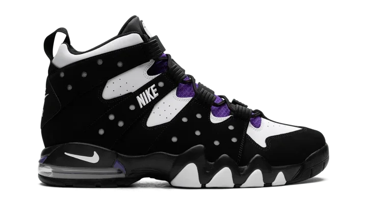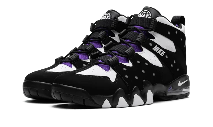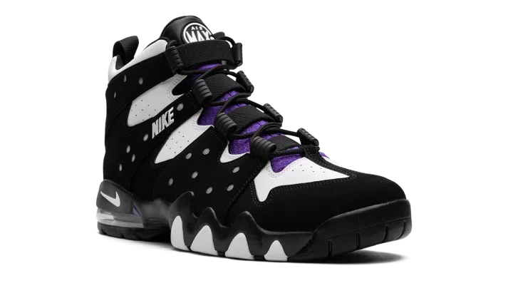 The Nike Air Max CB '94 OG "Black/White/Purple" is the 2023 retro release of the classic Charles Barkley signature shoe. One of the most beloved sneakers in "Sir Charles's" signature basketball shoe line, the CB '94 was worn by Barkely during the 1993-94 NBA season with the Phoenix Suns. This black synthetic nubuck, white leather, and purple-accented colorway is by far the most celebrated look for the sneaker. Designed by Tinker Hatfield, the shoe is said to be inspired by a straight jacket, with a quick lace system allowing for a snug fit. The design also features Air Max 2 cushioning in the heel.
