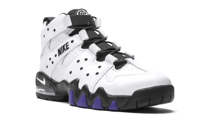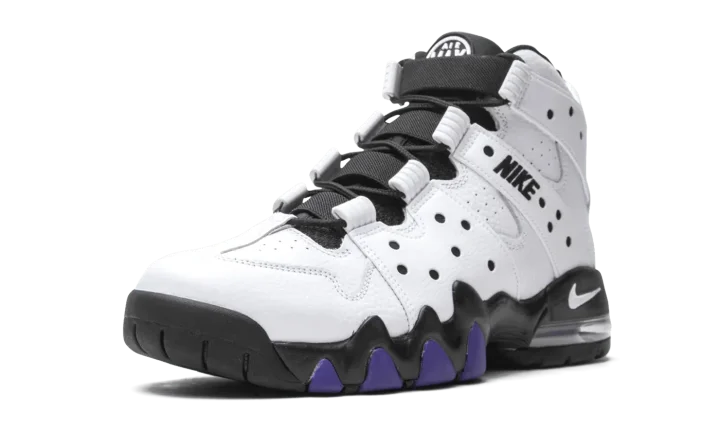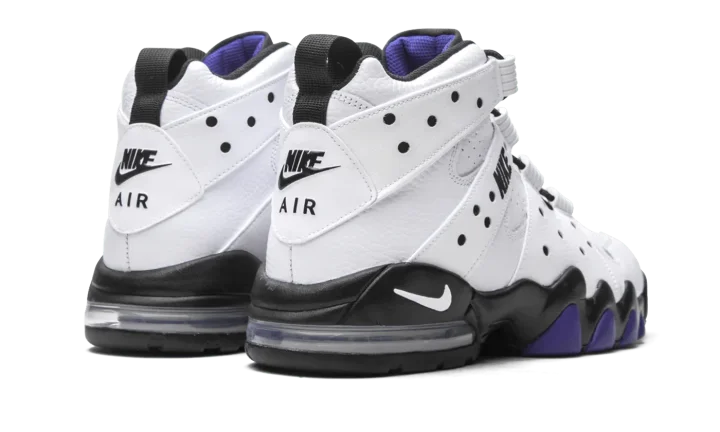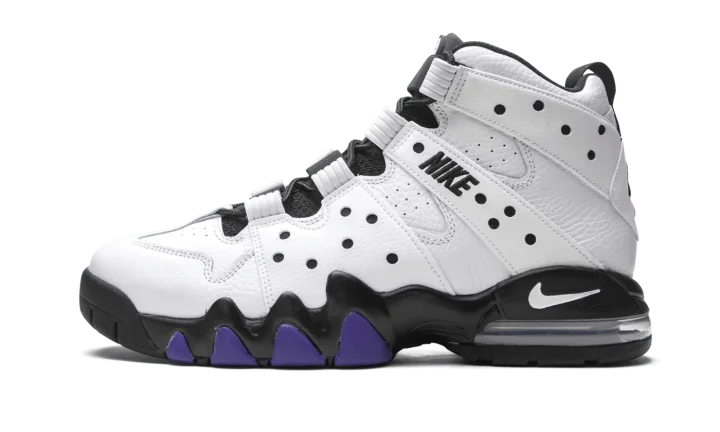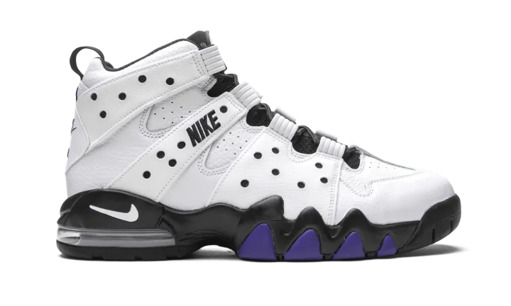 The Nike Air Max2 CB '94 "White/Varsity Purple" is an original colorway of Charles Barkley's former signature shoe with Nike that debuted in 1994. The "White/Varsity Purple" was "Sir Charles'" "home" colorway of the Air Max2 CB '94—he wore a predominantly black version of the shoe when not playing in Phoenix during the '93-94 NBA season. Quintessentially retro, the "White/Varsity Purple" is a Tinker Hatfield designed shoe inspired by the look of a straightjacket. The white leather overlays along the eyelets and midsole mimics the look of the confined garment. Black "Nike" embroidery is stitched onto the midfoot harness that supports the lacing system and black accenting is located on the nylon tongue. A classic black "Nike Air" logo is located on the heel and a mini Swoosh on the back of the midsole. Like the original Air Max2 CB '94, this retro version of the shoe features a visible Air unit in the heel. Release date: February 15, 2021.