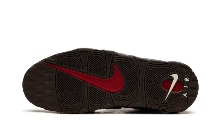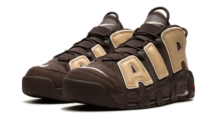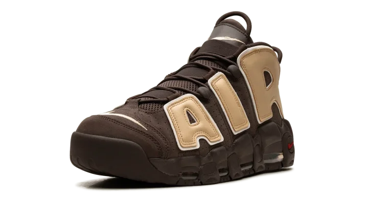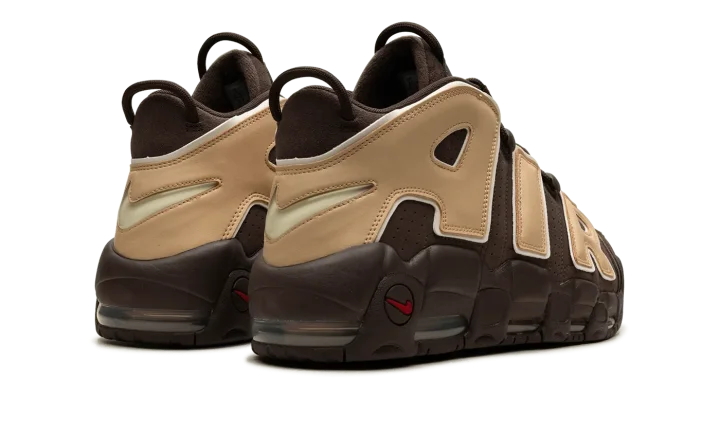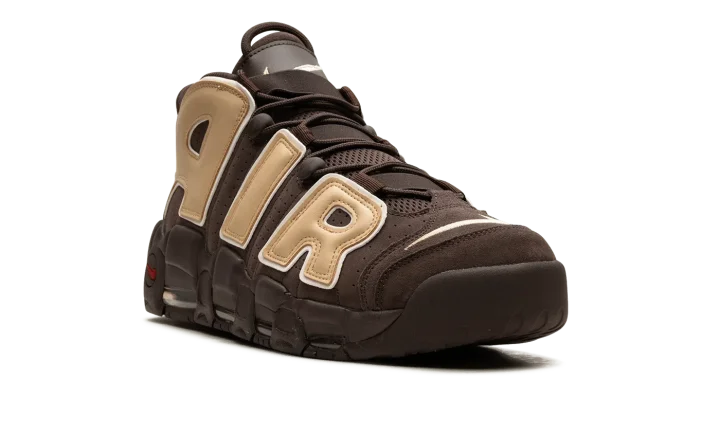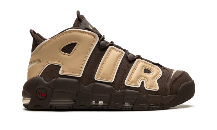 The Nike Air More Uptempo "Baroque Brown" is an earth tone colorway of Scottie Pippen's classic signature sneaker. Debuted in 1996, the Air More Uptempo was memorably worn by Pippen with the Chicago Bulls during the team's then-NBA record 72-win regular season in 1995-96. Here, the unique look for the classic models in "Baroque Brown" features a brown suede construction with Sesame-colored, oversized, graffiti-inspired "AIR" branding on either side. A white Swoosh is embroidered on the toe and Sesame jeweled Swoosh is found on the heel. Underfoot, visible Air units in the forefoot and heel of the brown midsole complete the design. Release date: September 29, 2023
