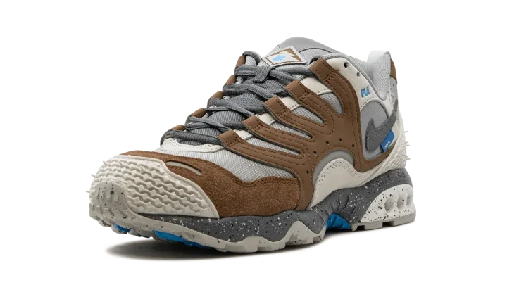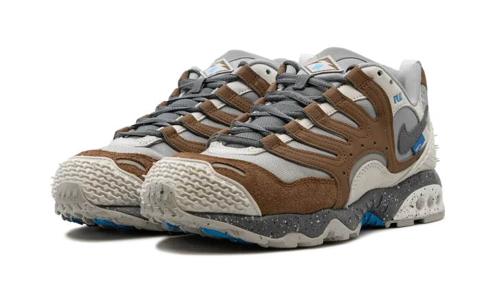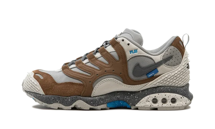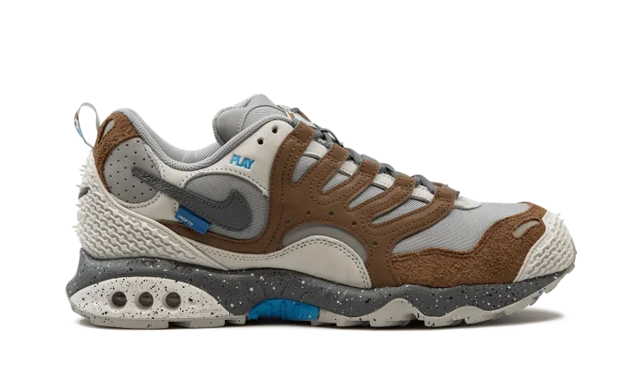 The Undefeated x Nike Air Terra Humara "Archaeo Brown" is a collaboration by the California-based retailer and Nike that celebrates the opening of the former's New York City store location in 2023. The Air Terra Humara debuted in 1997 as a performance outdoor footwear style before transitioning into the lifestyle shoe category thereafter. Here, the model is used in collaboration with Undefeated to celebrate the opening of the retailer's first East Coast outpost. The upper features a combination of Smoke Grey mesh and dotted leather on the base and Summit White leather on the overlay panels. Archaeo Brown suede and leather overlays can be found on the toe and heel, and on the midfoot area, respectively. A dark grey Swoosh is seen on either side, while "Play" appears on the sides of the collar. Undefeated's signature "Five Strikes" logo appears on the tongue. Underfoot, a grey speckled midsole completes the look. Release date: December 2, 2023