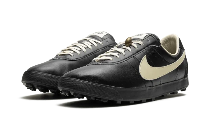 The Bode x Nike Astro Grabber "Black/Coconut Milk" is a collaboration between the high fashion brand and Nike on the retro performance sneaker. The Nike Astro Grabber was originally released as a performance baseball and softball shoe back in the late 1970s, before it was reissued as a performance football shoe in 1979. Amazingly, the style never received a retro release until Bode collaborated with Nike on the model in 2024. Bode's "Black/Coconut Milk" version features a black leather construction with an oversized Coconut Milk leather Swoosh on the sides. The inner lining is designed in Coconut Milk leather. "Bode" branding appears on the tongue, and a football-inspired lace charm, inspired by the Astro Grabber's past life as a football shoe, adds to the design's uniqueness. A black waffle outsole completes the look. Release date: April 18, 2024