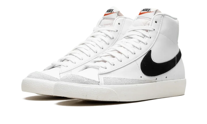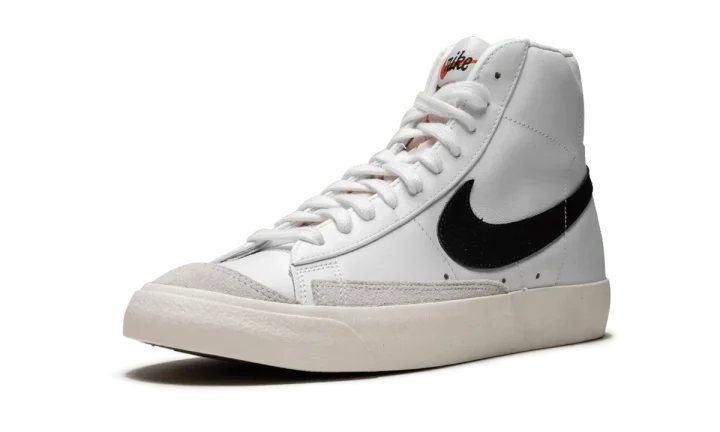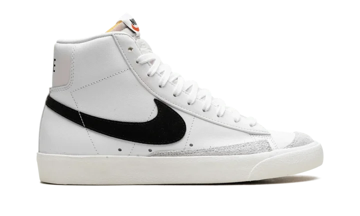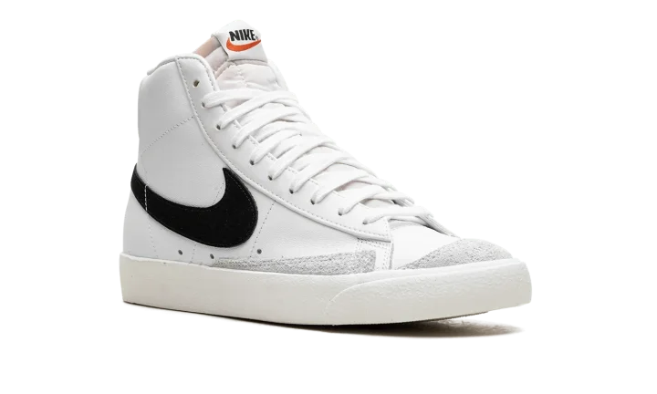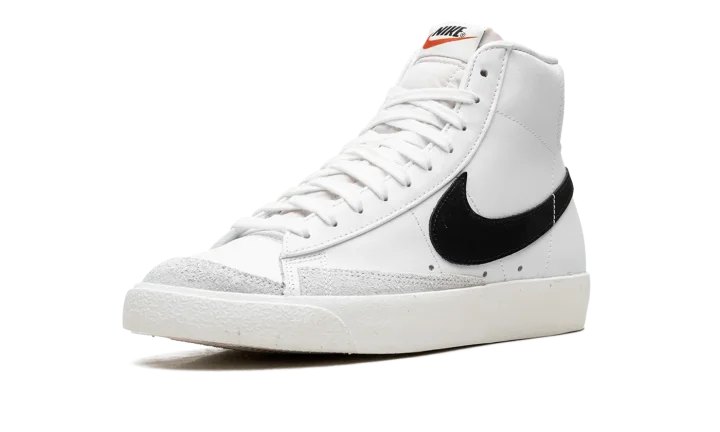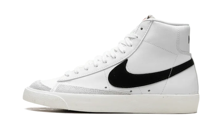 White/black leather Blazer Mid '77 Vintage sneakers from Nike featuring signature Swoosh logo detail, round toe, front lace-up fastening, ankle-length, branded heel counter, logo patch at the tongue, flat rubber sole and Release date: March 28th, 2019. These styles are supplied by a premium sneaker marketplace. Stocking only the most sought-after footwear, they source and curate some of the most hard to find sneakers from around the world.