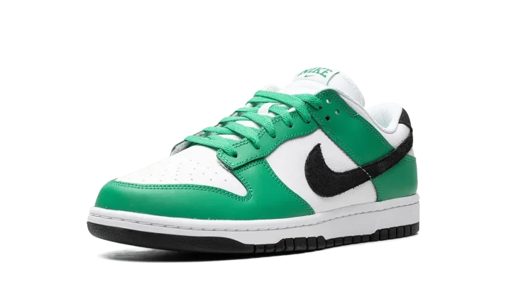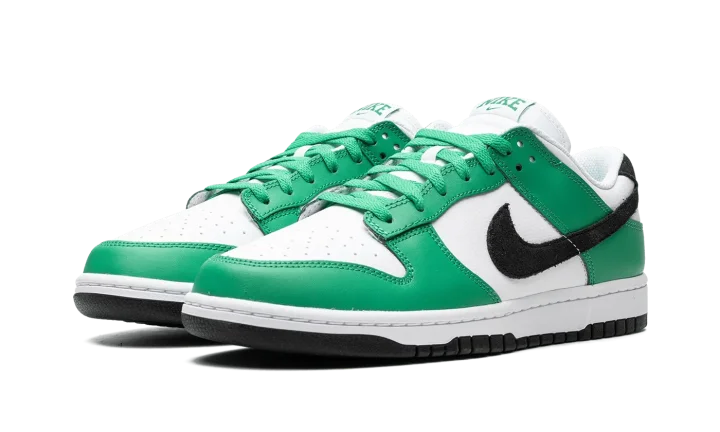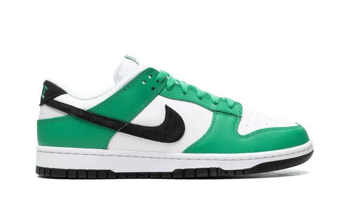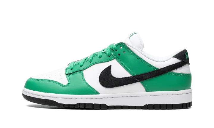 The Nike Dunk Low "Celtics" is a colorway of the retro basketball shoe that features the team uniform colors of the Boston Celtics on its design. While not officially associated with the Celtics, this Dunk Low still shows love to the storied basketball team by featuring its uniform colors across its leather panels. More specifically, the shoe has a white leather base with Stadium Green leather overlays and a black leather Swoosh. Block letter "Nike" branding appears on the tongue tag, on the heel, and on the insole. Release date: June 13, 2023