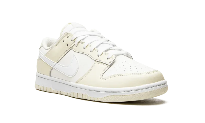 The Nike Dunk Low "Coconut Milk" is a 2022 release of the classic sneaker's take on Nike's "Coconut Milk" hue. This clean and simple sneaker features a Sail leather base covering the toebox, quarter panels and ankle, while the overlays are done in the creamy "Coconut Milk" shade. To further highlight the monochromatic look, the sockliner appears in an off-white shade, while the laces, heel tab branding, and main lateral Swoosh add more definition in bright white. The midsole continues with the crisp white and is finished off with a rubber outsole in the nominal color.