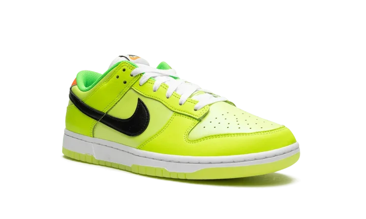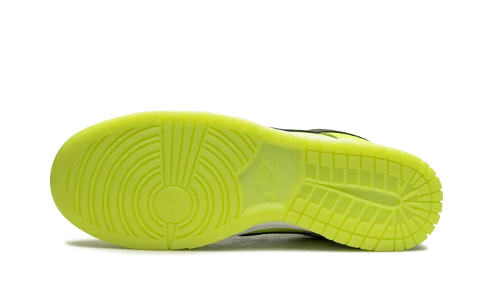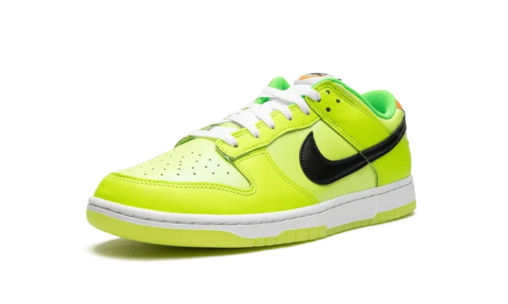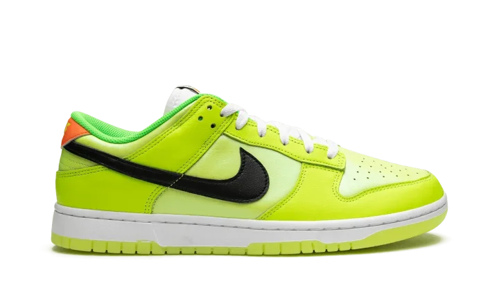 The Nike Dunk Low "Glow in the Dark" is a can't-miss colorway of the vintage basketball shoe that features a glow-in-the-dark outsole. Undoubtedly one of the boldest Dunk colorways in the model's collection, the "Glow in the Dark" features shiny Volt leather on its base with tonal leather overlays throughout its design. A black leather Swoosh logo appears on both sides of the shoe. A "Nike" logo is found on the orange leather heel tab. Another "Nike" logo appears on the tongue tag with an orange Swoosh. Underfoot, the shoe's glow-in-the-dark rubber outsole shines when exposed to light in the dark.