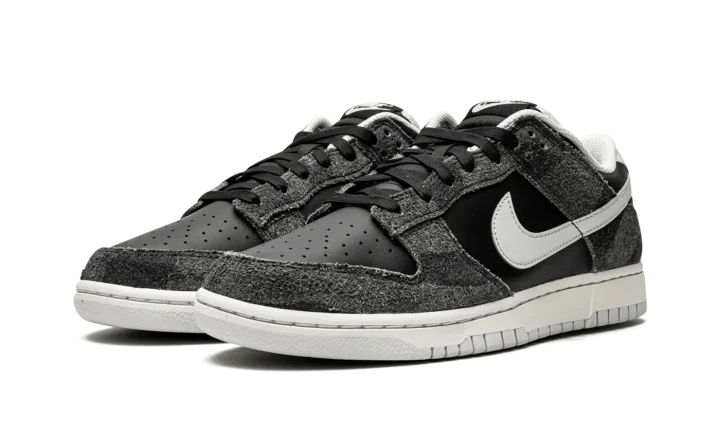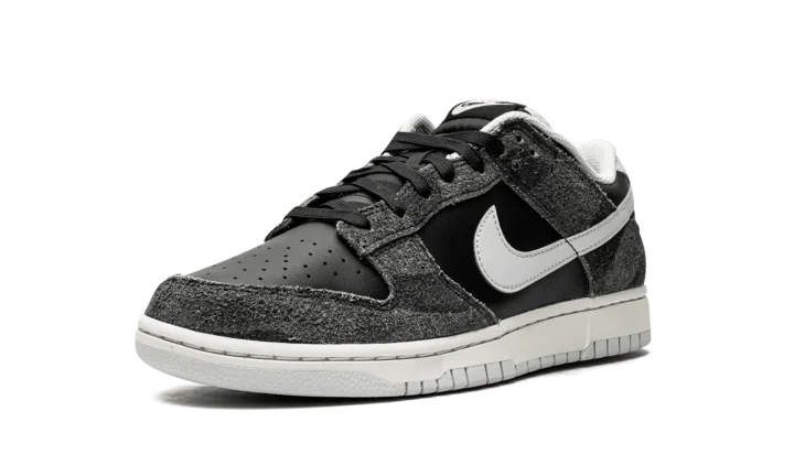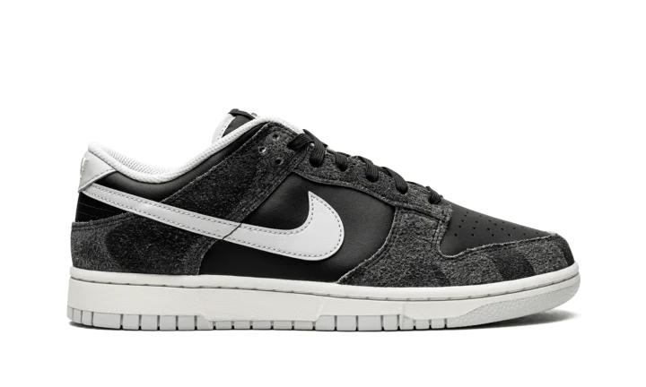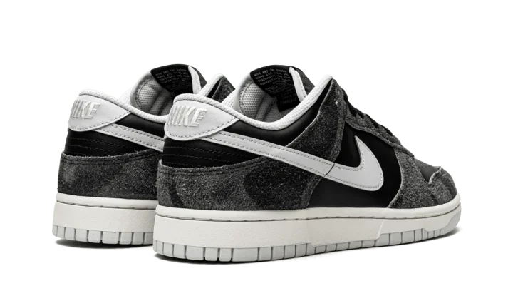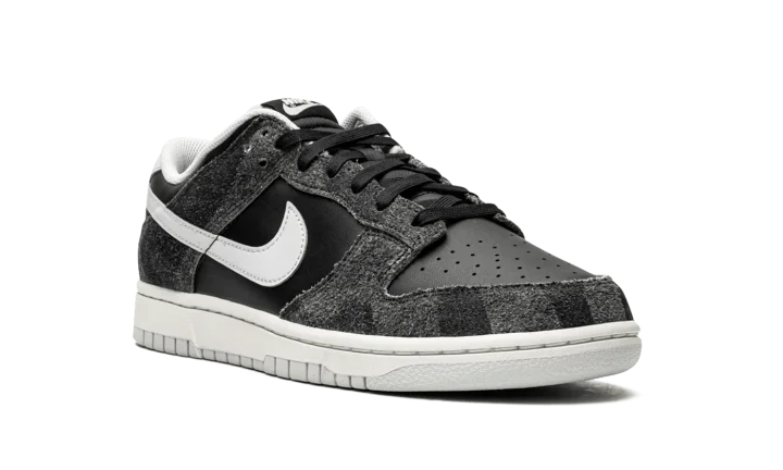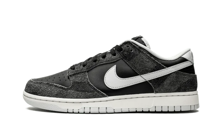 The Nike Dunk Low "Zebra" from the "Animal Pack" of June 2021 is a special release of the casual lifestyle shoe that features a subtle, animal-inspired print on its hairy suede overlays. The Anthracite suede overlays on the forefoot, eyelets, collar, and heel feature a faint zebra-inspired pattern. Nike contrasts the look with black leather on the perforated toe and mid-panel. A Pure Platinum leather Swoosh can be found on both sides and tonal "Nike" branding is embroidered on the back of the shoe. Silver "Nike" and Swoosh detailing is printed on the black nylon tongue tag on the black nylon tongue. The versatile "Zebra" colorway's design is finished off with a white rubber midsole and Pure Platinum outsole. The "Animal Pack" also included a cheetah-inspired Dunk. Release date: June 22, 2021