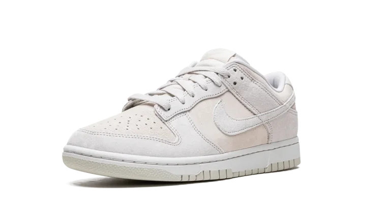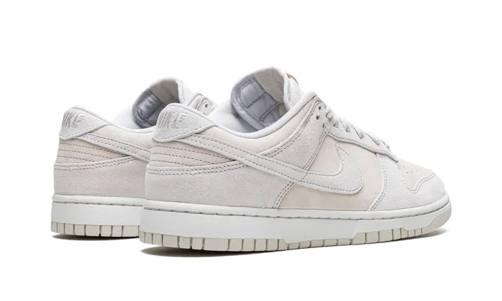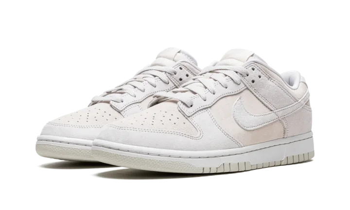The Nike Dunk Low PRM "Vast Grey" is a March 2022 release of the classic sneaker in a colorway with a buttery all-suede construction. The "Vast Grey" features a low contrast, two-tone grey design. Specifically, a slightly darker, warmer shade of grey suede is found on the perforated toe, mid-panel, collar, and heel. A lighter version of grey suede appears on the overlays and Swoosh. Tonal "Nike" branding can be found on the shoe's heel. The "Nike" and Swoosh detailing on the tongue tag arrives in grey, as well. Release date: March 1, 2022