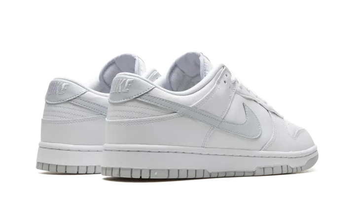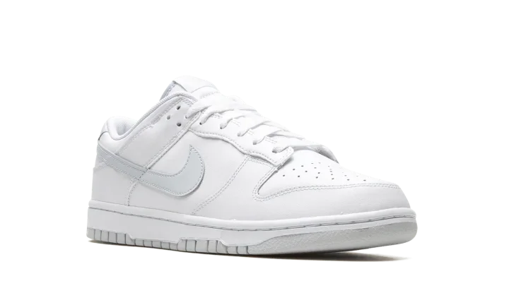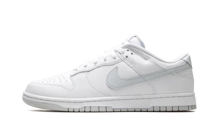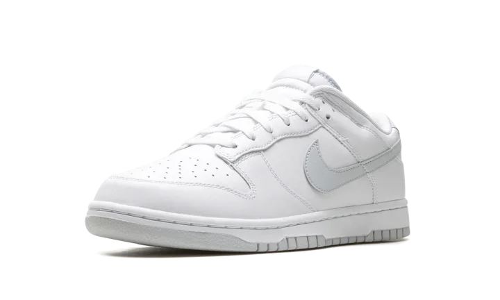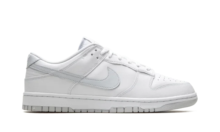 The Nike Dunk Low "White/Pure Platinum" is a mostly monochromatic white colorway of the retro basketball and lifestyle shoe that can be worn with anything. The "White/Pure Platinum" Dunk Low is the same colorway that was featured on the Dunk High in 2020. Like its predecessor, the Dunk Low "White/Pure Platinum" is versatile and timeless in design. The shoe features a white leather upper with a Pure Platinum leather Swoosh on the sides. Additional Pure Platinum accenting can be found on the "Nike" branded heel tab. Classic "Nike" detailing appears on the tongue. The white midsole is paired with a Pure Platinum rubber outsole. Release date: November 19, 2022