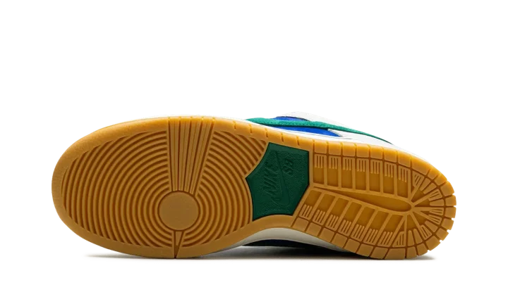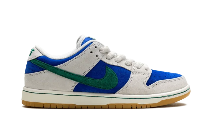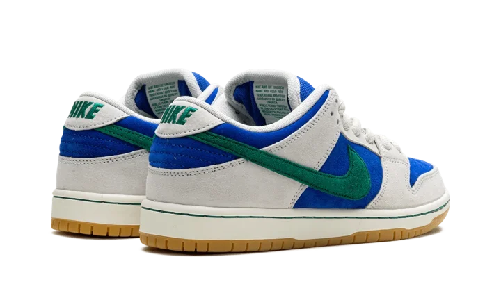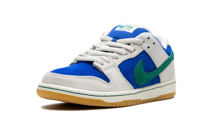 The Nike SB Dunk Low "Hyper Royal/Malachite" is a colorway of the skateboarding shoe with a can't-miss color scheme. Made for skateboarding or casual wear, the SB Dunk Low "Hyper Royal/Malachite" comes in eye-catching colors, with Hyper Royal suede appearing on the base and Phantom-colored suede appearing on the overlays. A Malachite suede Swoosh logo is seen on the sides. More Malachite accenting appears on the "Nike" embroidery on the heel and on the branding on the tongue tag. A gum rubber sole completes the look.