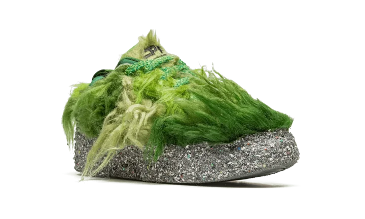 The Cactus Plant Flea Market x Nike Flea 1 is a head-turning shoe co-designed by the mysterious streetwear brand and Nike. Following several successful collaborations, Cactus Plant Flea Market and Nike teamed up to release the Nike Flea 1 in 2022, a hairy, eye-catching shoe that is as bold as any sneaker on the market. The silhouette features a shaggy, faux fur construction in various shades of green, which is inspired by an overgrown plant, playing into the "Cactus Plant Flea Market" theme. An embroidered yin-yang logo appears on the lateral side of the heel. Dual Cactus Plant Flea Market and Nike branding can be found on the tongue. A zippered stash pocket appears on the underside of the tongue. The shoe is complete with a Nike Grind midsole in mismatched colors and a Nike Dunk rubber outsole. Release date: November 29, 2022