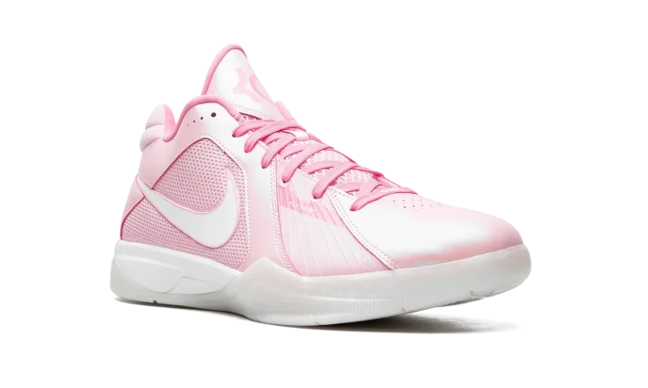 The Nike KD 3 "Aunt Pearl" is a special colorway of Kevin Durant's third signature shoe that honors his late aunt who passed away from cancer in 2000. The "Aunt Pearl" colorway theme debuted on the Nike KD 4 back in 2012 before becoming an integral part of Durant's signature sneaker line in the years thereafter. Here, the "Aunt Pearl" theme appears on the Nike KD 3 for the first time on this November 2023 release. The shoe has a predominately pink-based appearance, with hues of Medium Soft Pink and Lotus Pink throughout its design. Details inspired by Aunt Pearl are also seen throughout the shoe, including "Aunt Pearl" and "Kay Yow" on a special logo on the heel. Release date: November 25, 2023