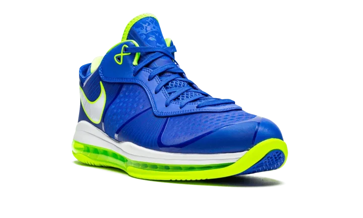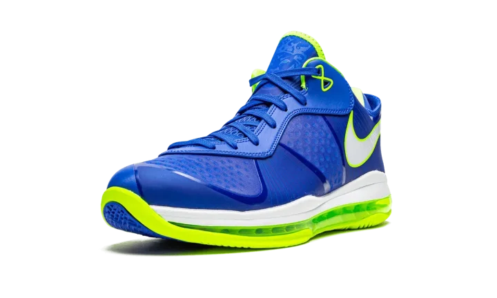 Treasure blue/white/black/volt LeBron 8 V2 Low "Sprite 2021" from NIKE featuring signature Swoosh logo detail, panelled design, round toe, front lace-up fastening, rubber sole, transparent Max Air sole and Release date: Summer 2021. These styles are supplied by a premium sneaker marketplace. Stocking only the most sought-after footwear, they source and curate some of the most hard to find sneakers from around the world..