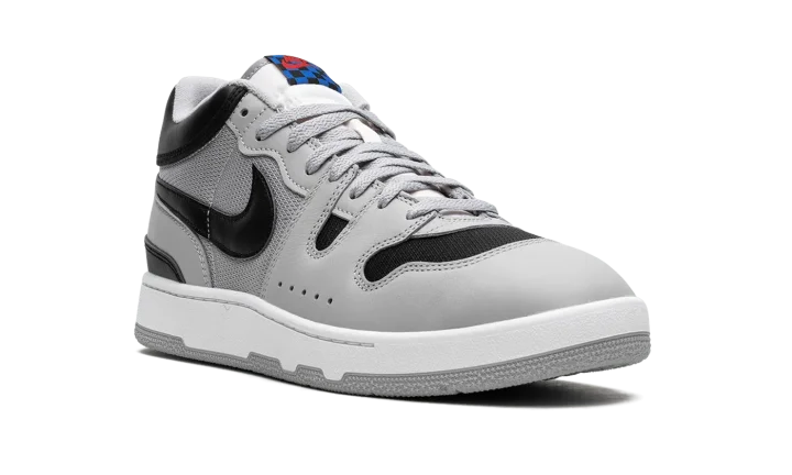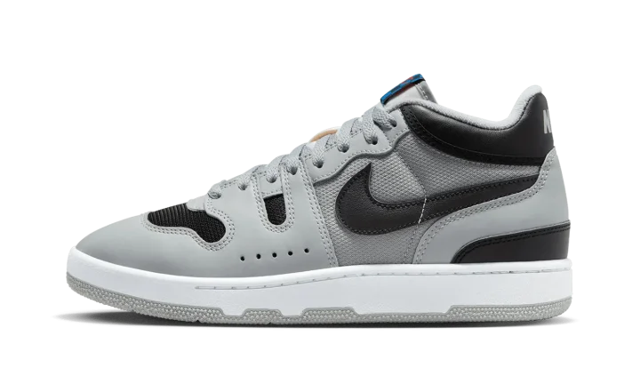The Nike Mac Attack OG "Light Smoke Grey" is the original colorway of the retro tennis shoe worn by tennis star John McEnroe in the mid-1980s. Its grey-and-black design stood in contrast to the all-white tennis shoes that proliferated the sport back in the day. Originally debuted in 1984, the Mac Attack never received a retro release until this 2023 edition. The modern Mac Attack OG is identical to the original version from '84. The shoe features a light grey mesh base with black mesh on the toe. Light Smoke Grey leather overlays are found throughout the design and a black leather Swoosh is located on the sides. The shoe's signature checkerboard-patterned tongue tag completes the classic design.