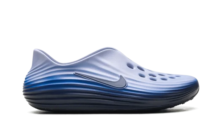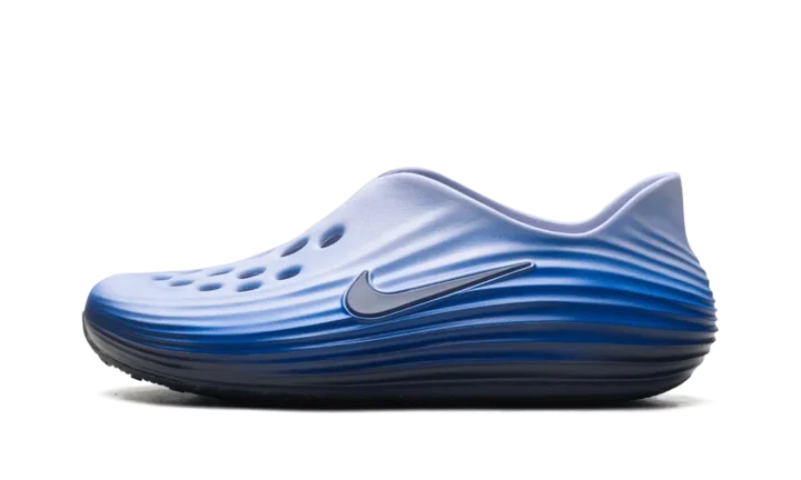 Give your feet a superior rest with the Nike ReactX Rejuven8 'Midnight Navy Comet Blue'. This innovative slip-on recovery shoe is built entirely from soft, responsive ReactX foam, making it feel like walking on clouds while maintaining a highly structured and futuristic aesthetic.