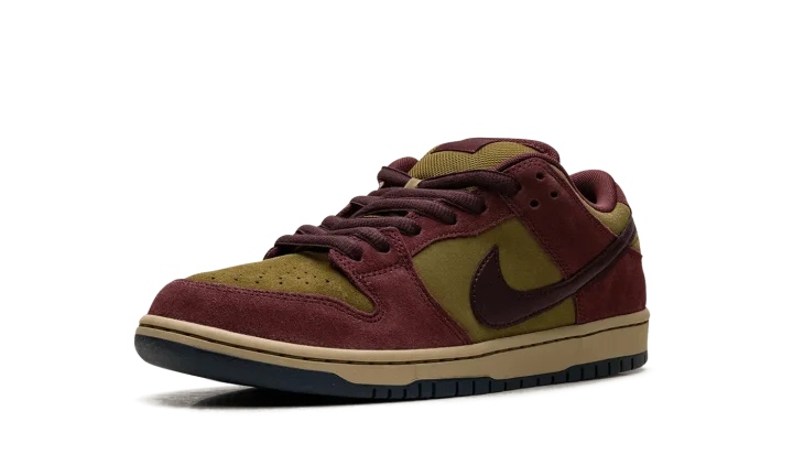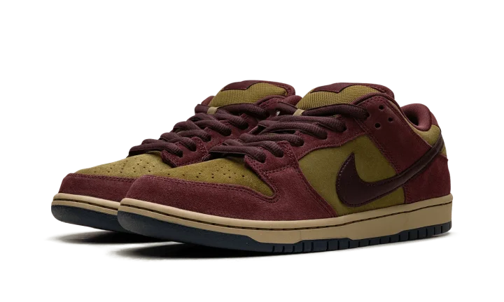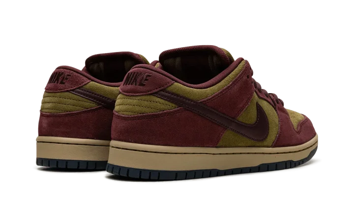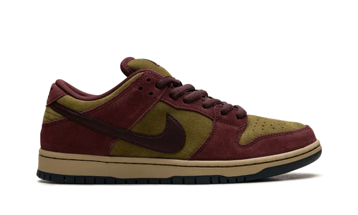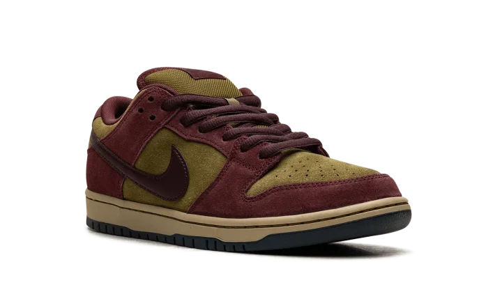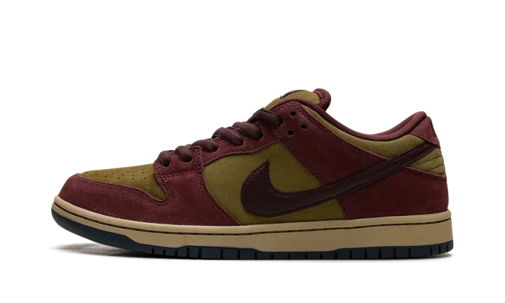 Cruise into autumn with just the right colours. The Dunk Low pairs an earthy mix of Dark Team Red and Olive Flak suede with Parachute Beige sidewalls and Armoury Navy outsoles.